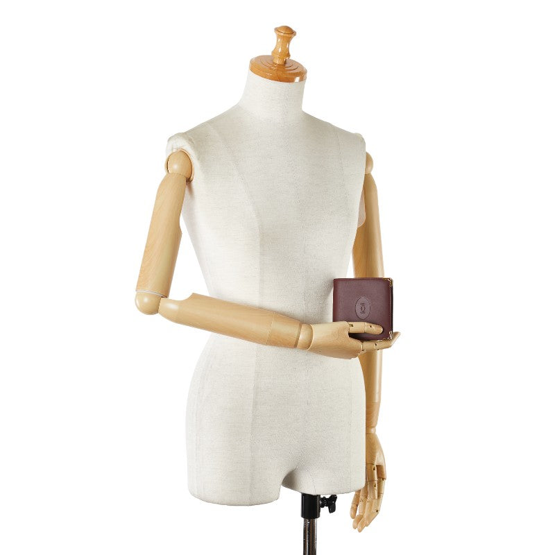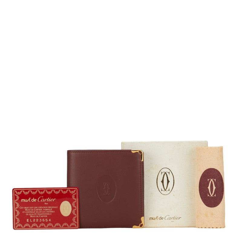 カルティエ マストライン 二つ折り財布 ワインレッド ボルドー レザー レディース CARTIER 【中古】