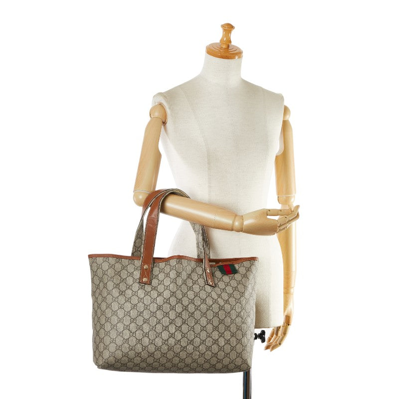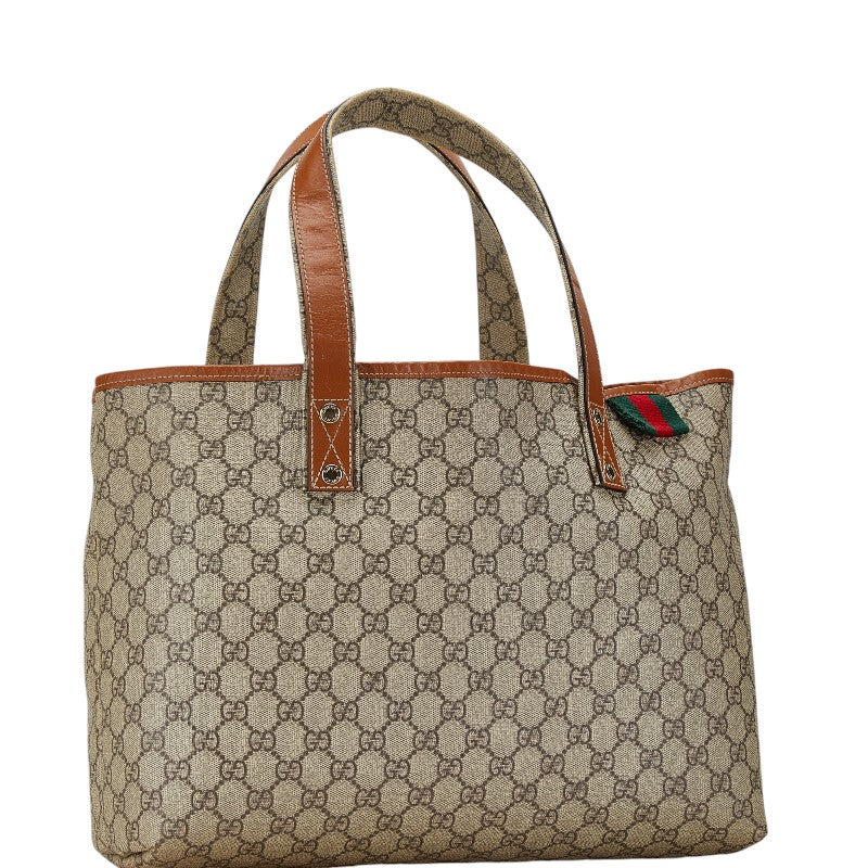 グッチ GGプラス シェリーライン トートバッグ 211134 ベージュ ブラウン PVC レザー レディース GUCCI 【中古】
