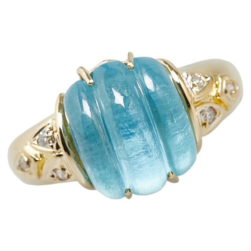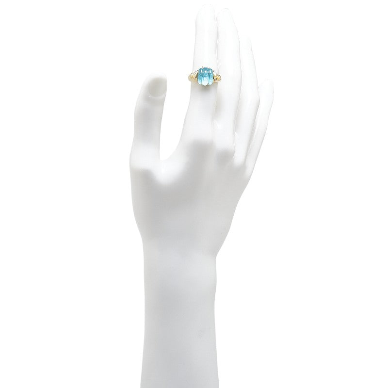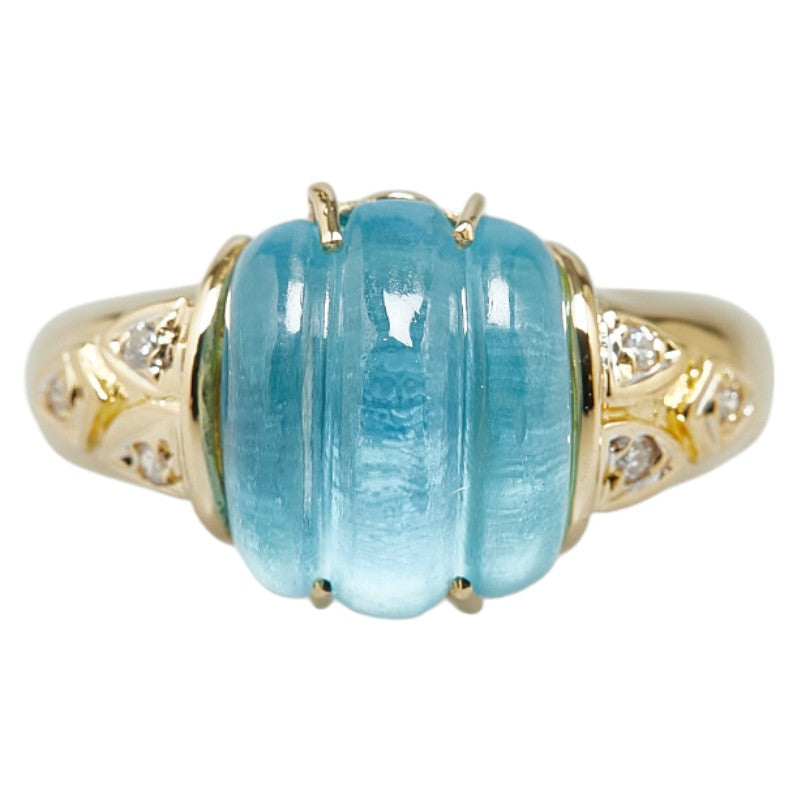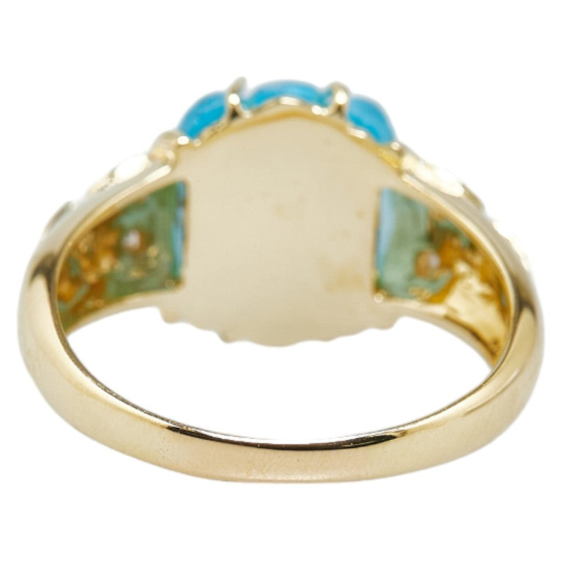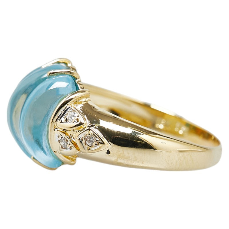 ゴールド ブルー K18YG イエローゴールド ブルートパーズ ダイヤ リング 指輪 レディース 13号 【中古】