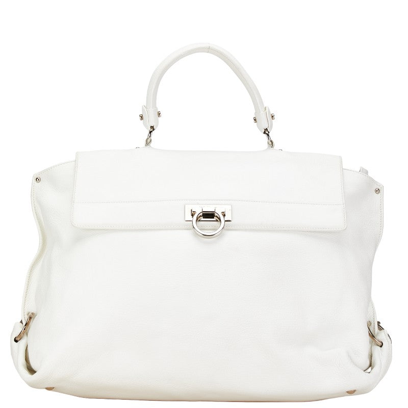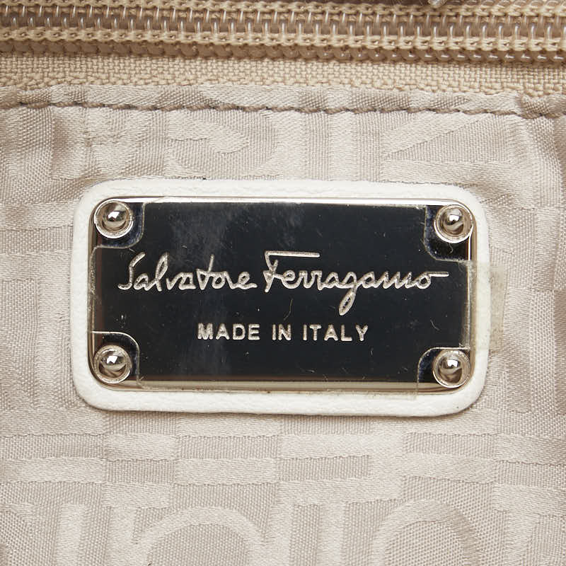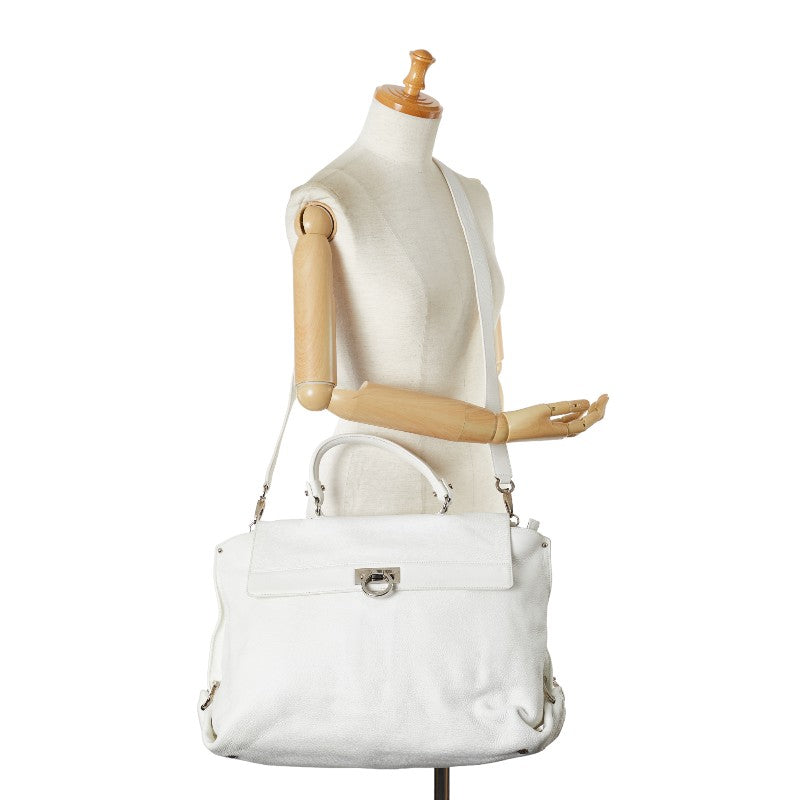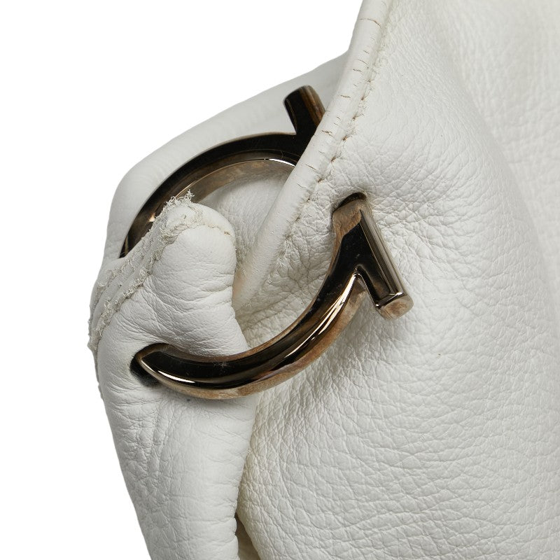 サルヴァトーレフェラガモ ガンチーニ ハンドバッグ ショルダーバッグ2WAY ホワイト シルバー レザー レディース Salvatore Ferragamo 【中古】
