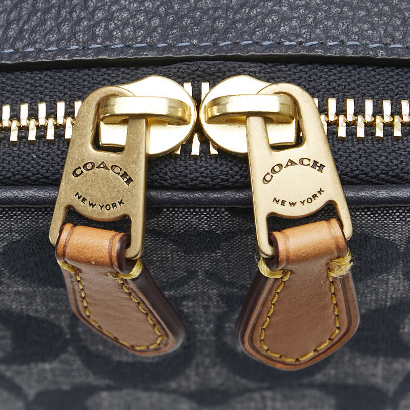 コーチ シグネチャー 斜め掛け ショルダーバッグ C2257 ネイビー ゴールド キャンバス レザー レディース COACH 【中古】
