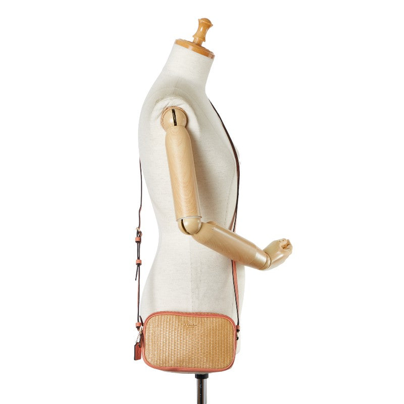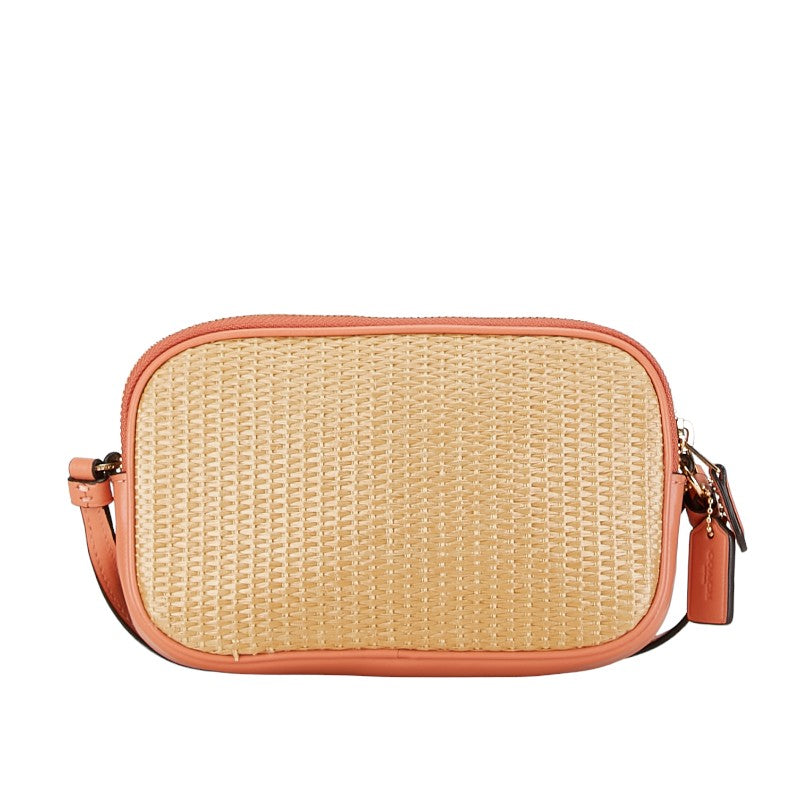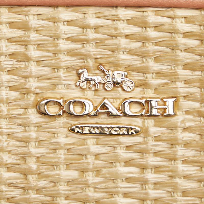 コーチ ロゴ 斜め掛け ショルダーバッグ ピンク ナチュラル ラフィア レザー レディース COACH 【中古】