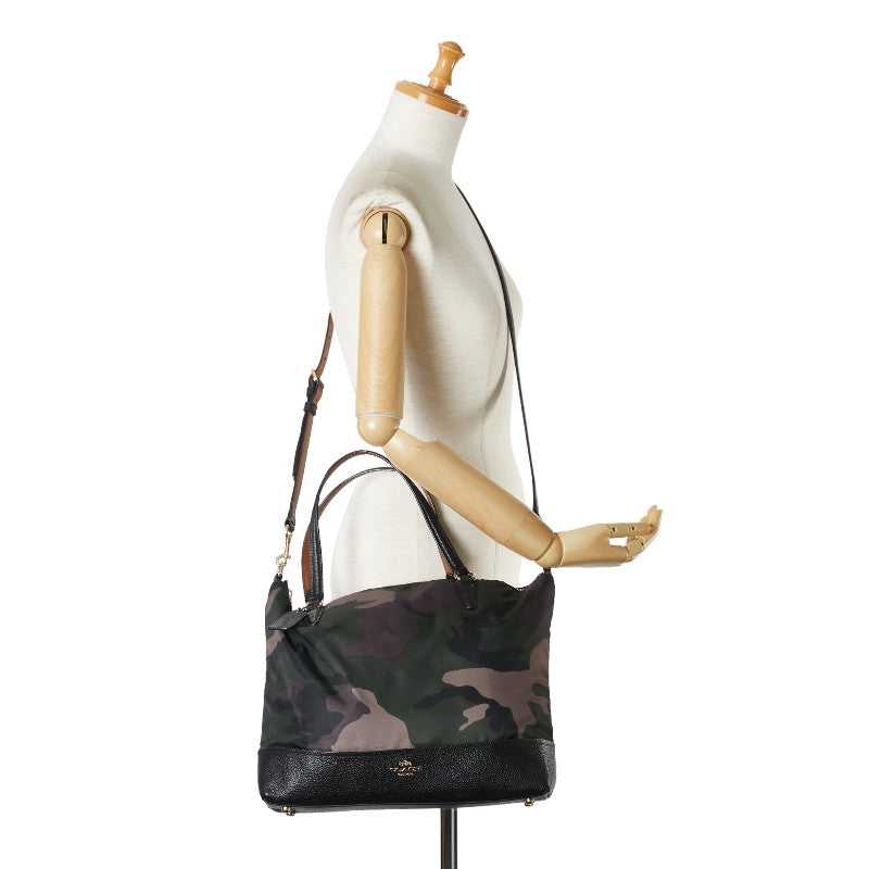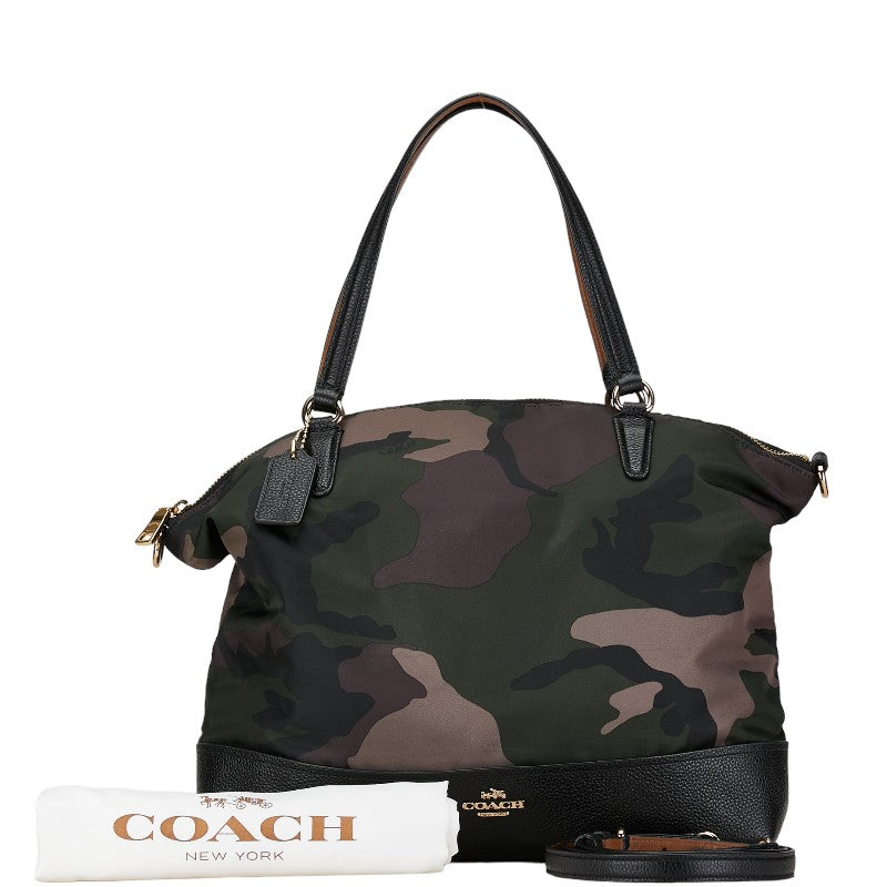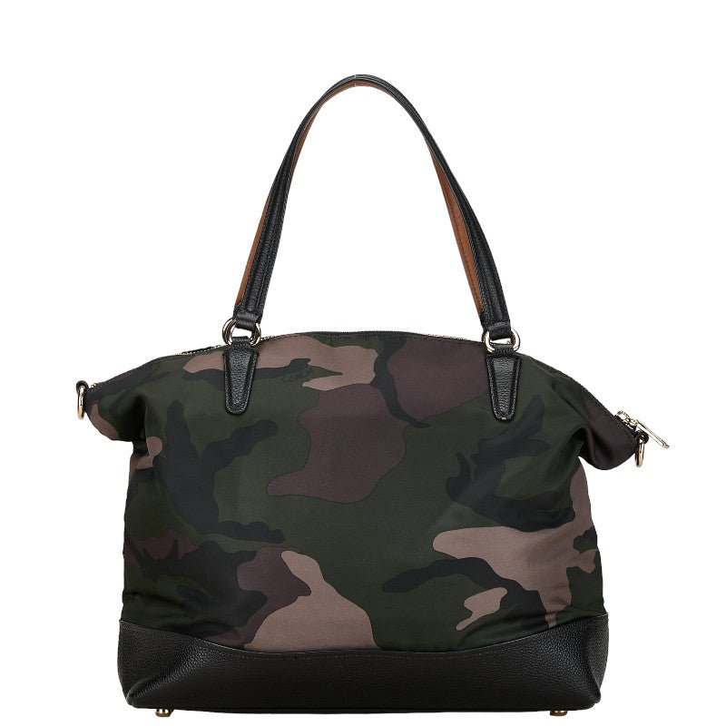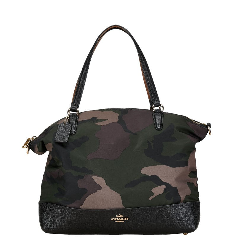 コーチ 迷彩 ハンドバッグ ショルダーバッグ2WAY F17777 グリーン ブラウン ナイロン レディース COACH 【中古】