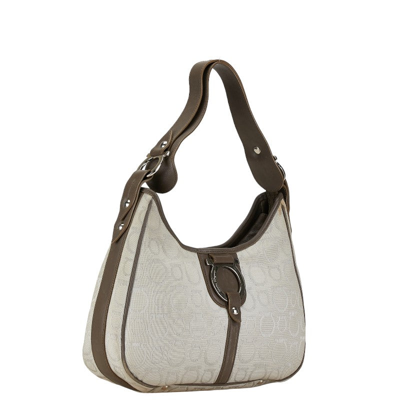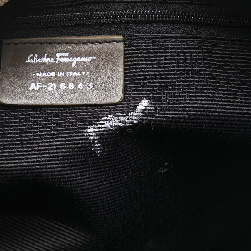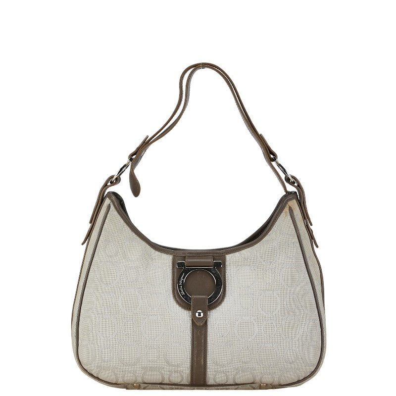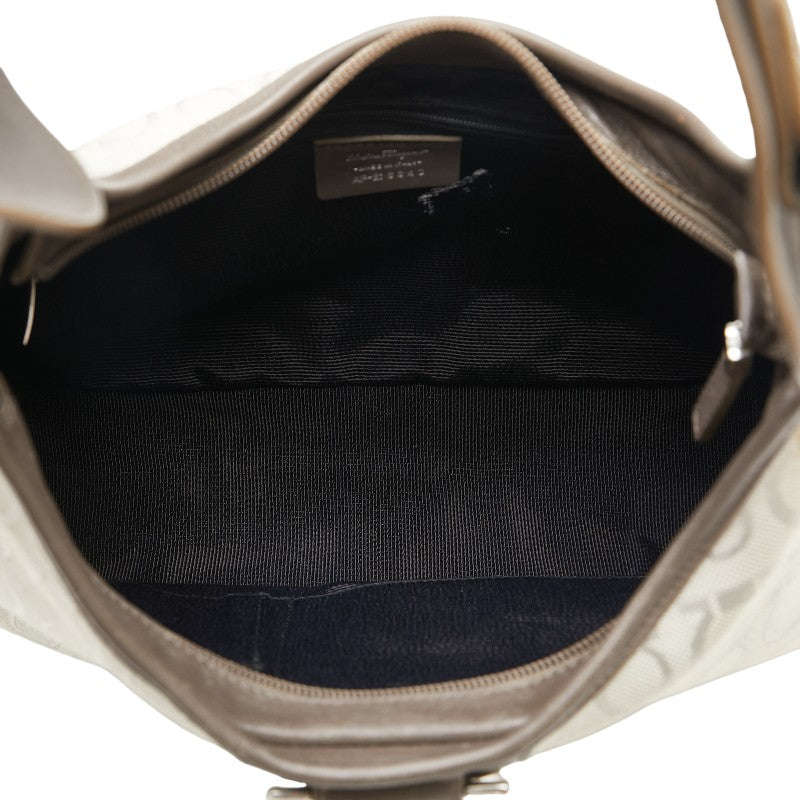 サルヴァトーレフェラガモ ガンチーニ ワンショルダーバッグ ハンドバッグ AF-21 6843 グレー ブラウン キャンバス レザー レディース Salvatore Ferragamo 【中古】