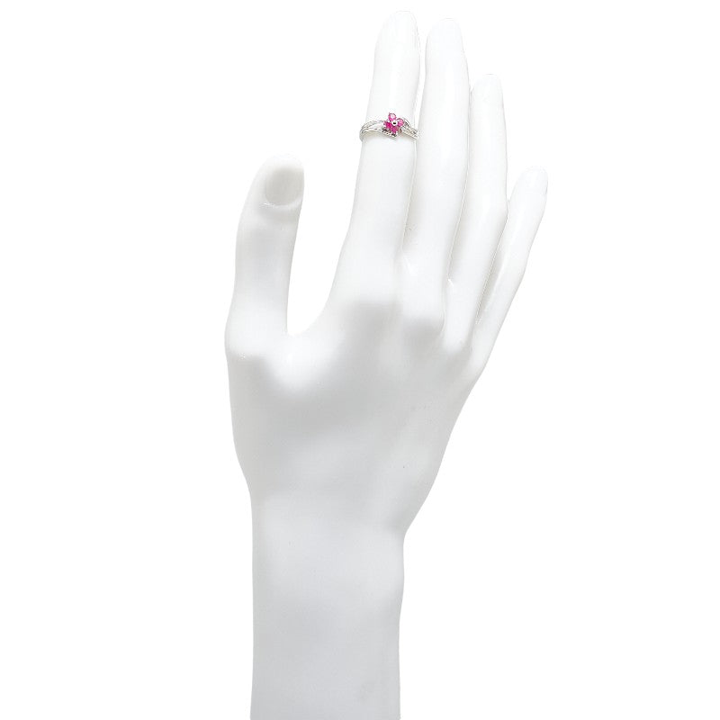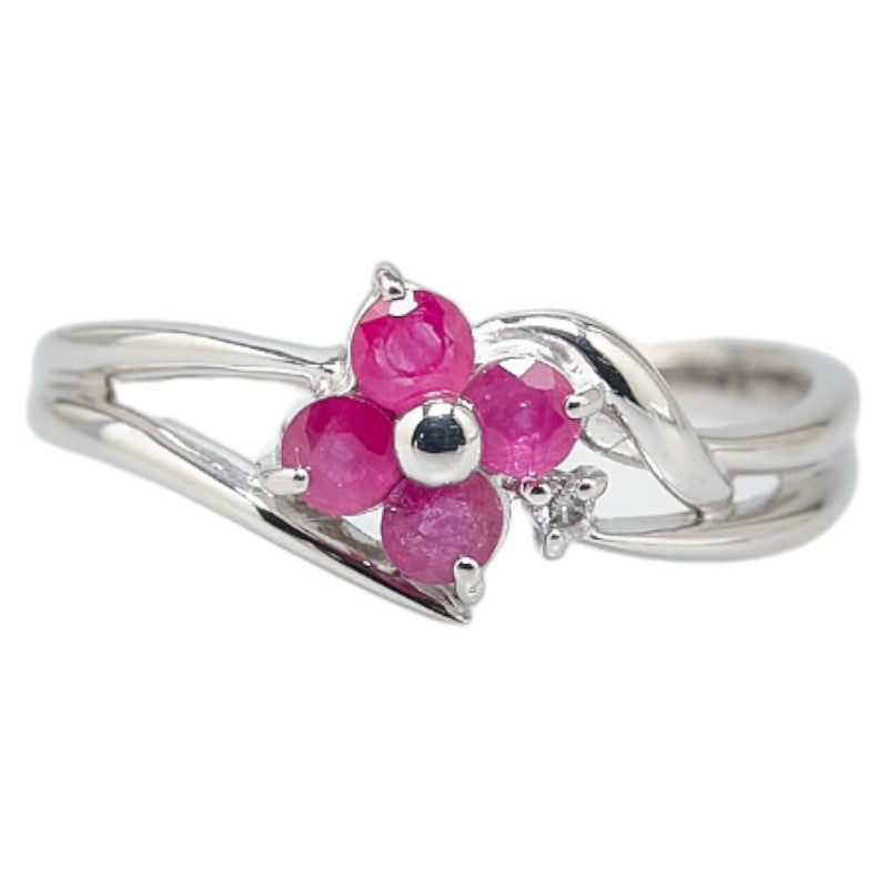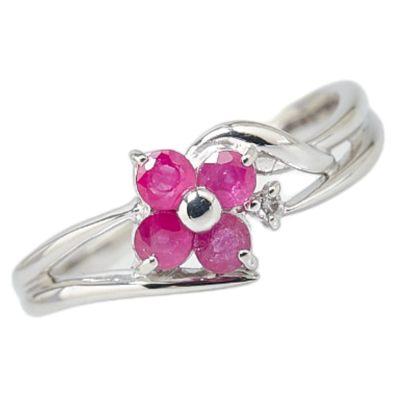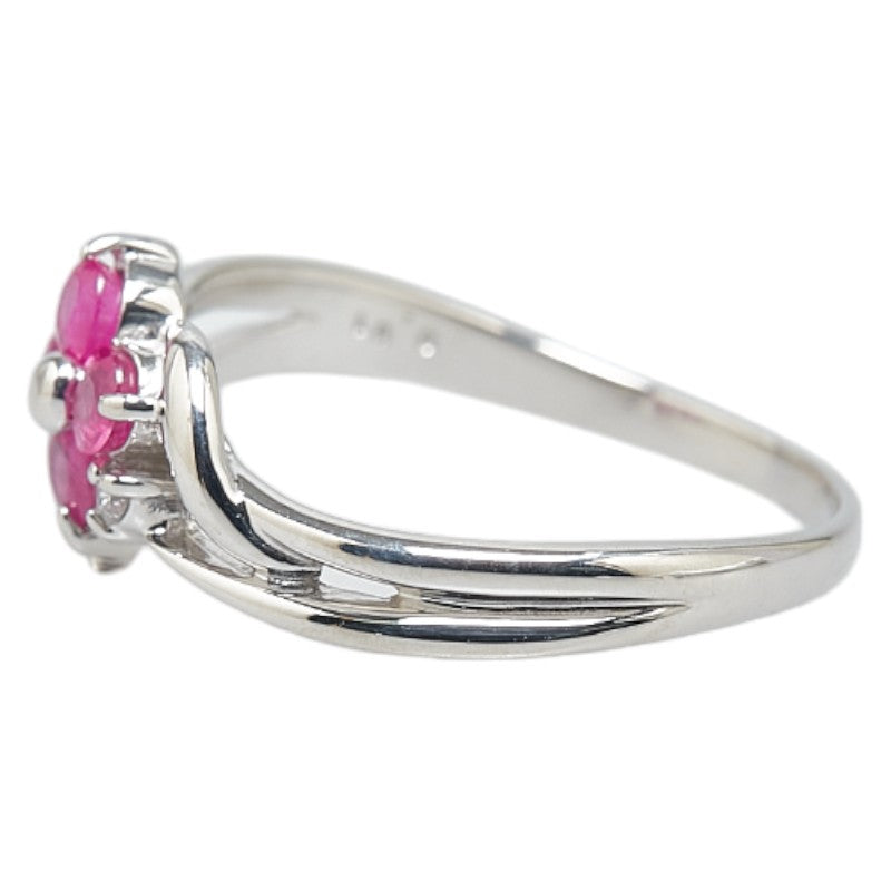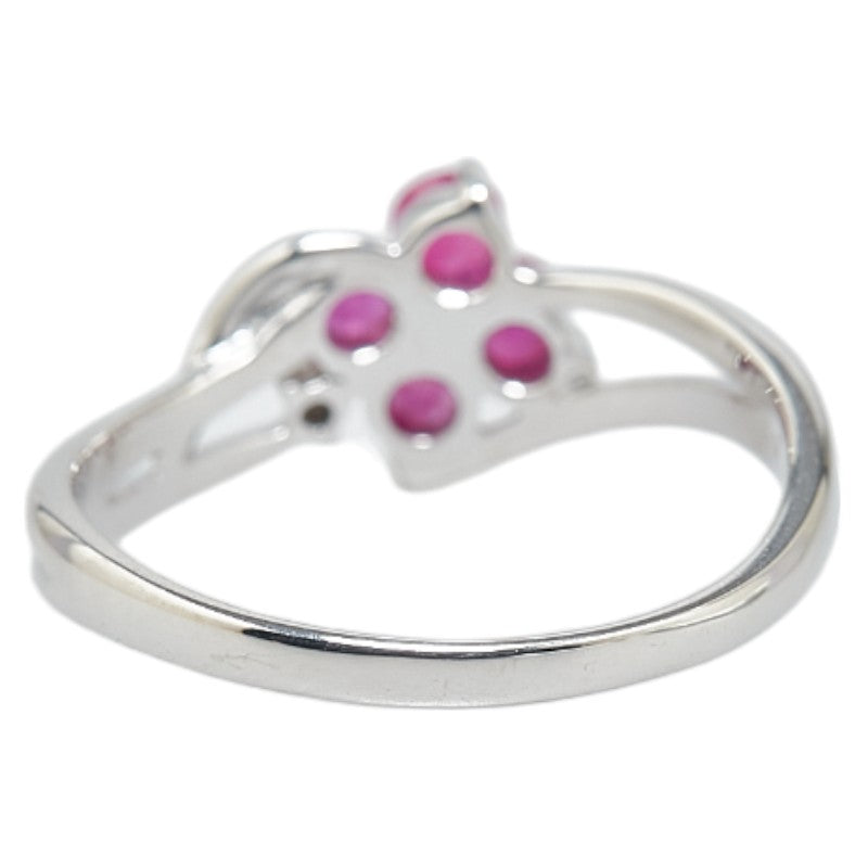 K10WG ホワイトゴールド ルビー ダイヤ0.01ct フラワー 花 モチーフ リング 指輪 レディース 8号 【中古】