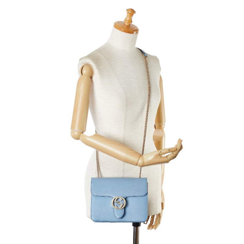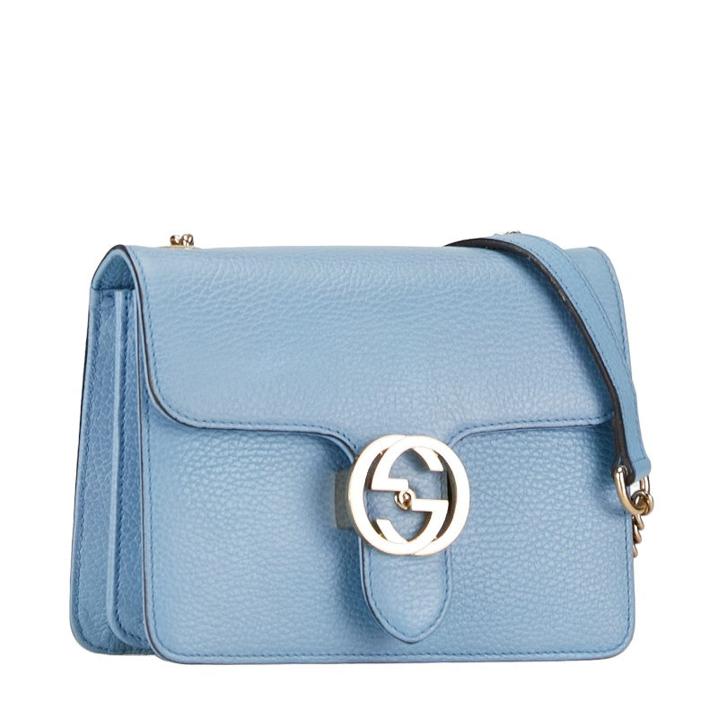 グッチ インターロッキングG 斜め掛け ショルダーバッグ 510304 ブルー ゴールド レザー レディース GUCCI 【中古】