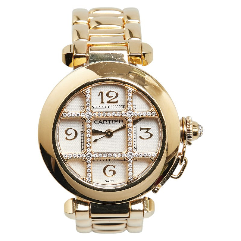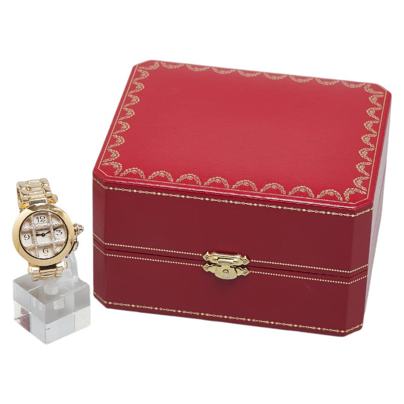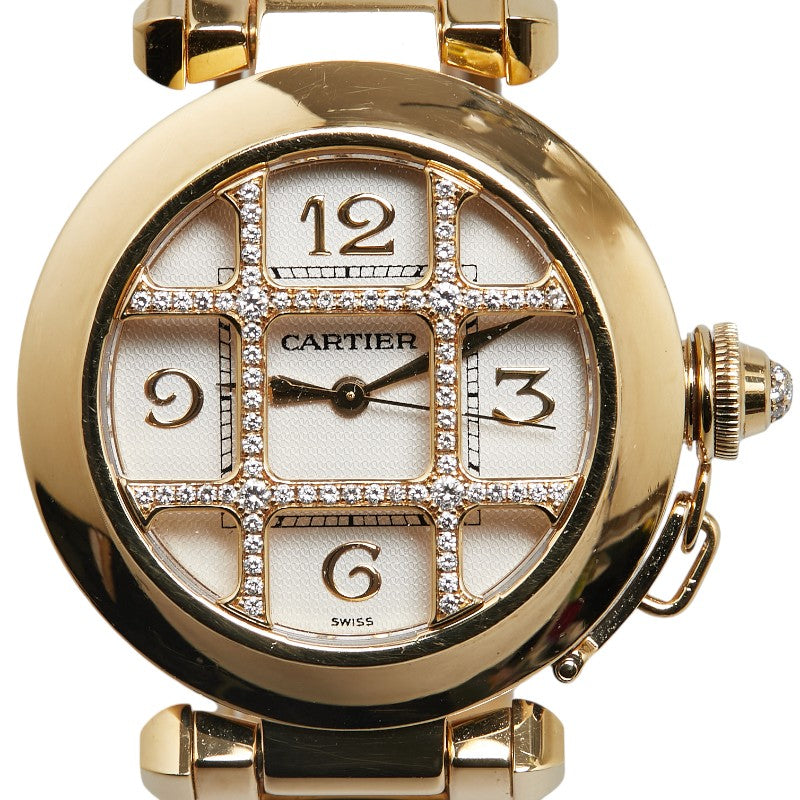 カルティエ パシャグリッド ダイヤ 腕時計 2399 自動巻き ホワイト文字盤 K18YG イエローゴールド ステンレススチール メンズ CARTIER 【中古】