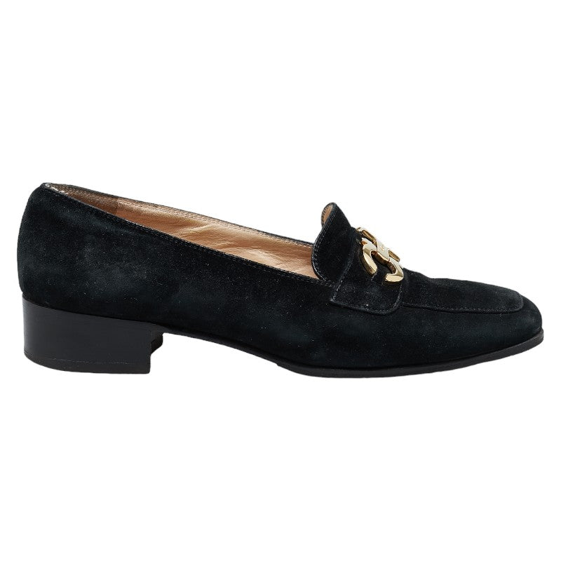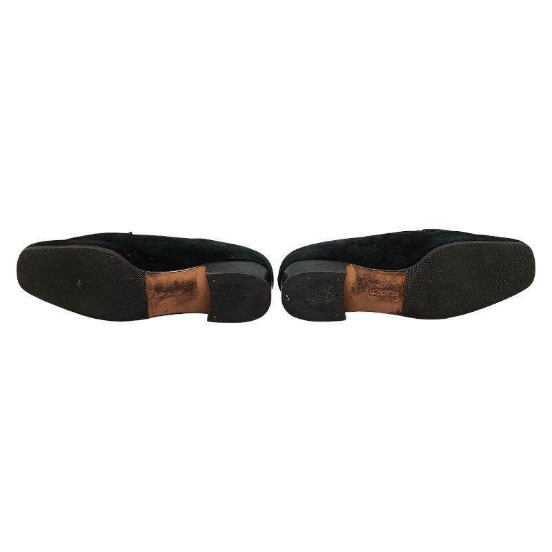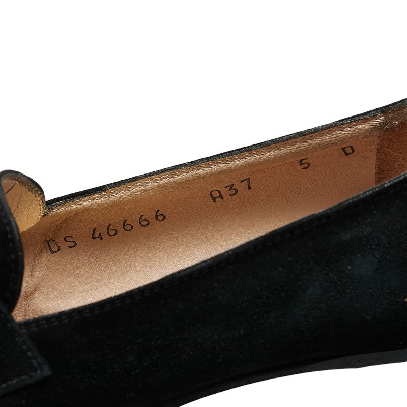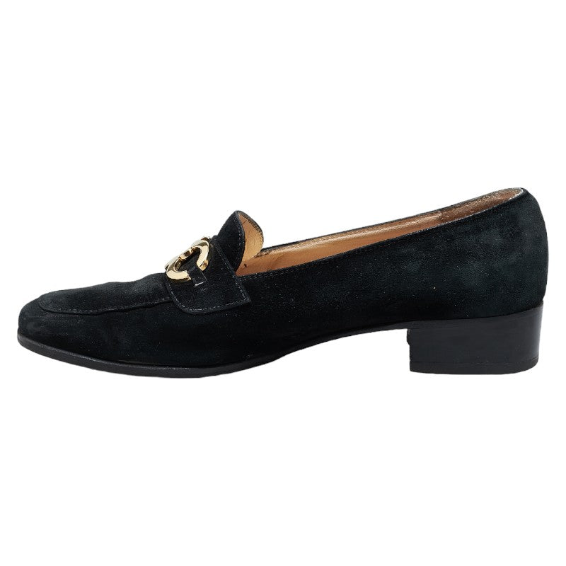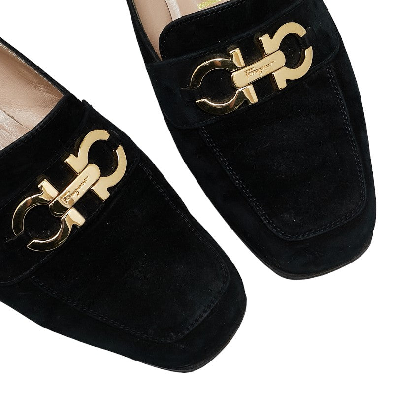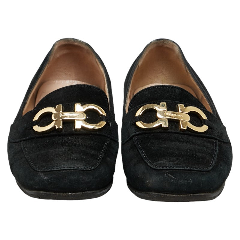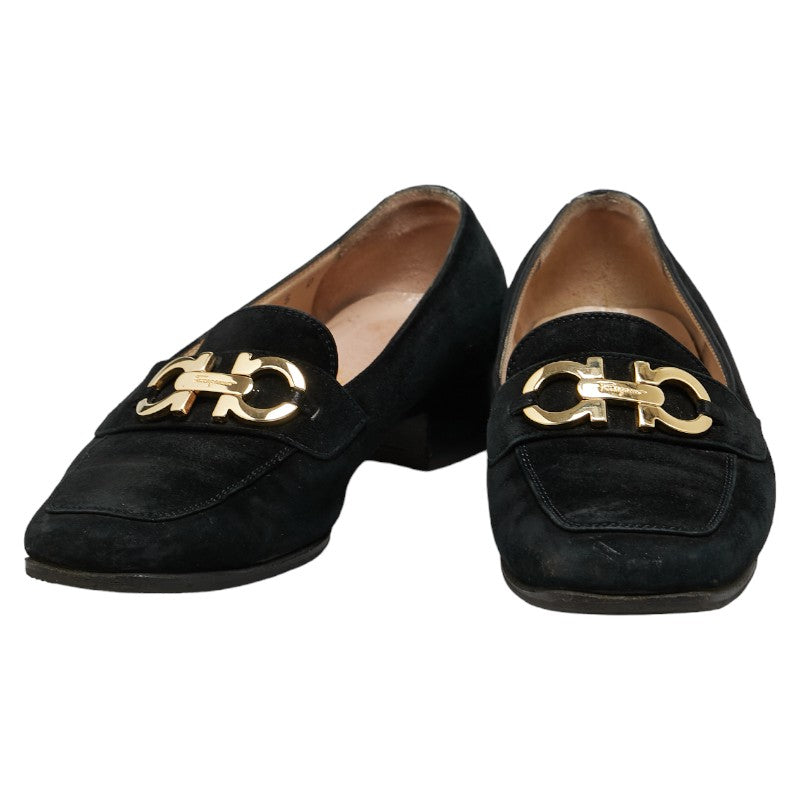サルヴァトーレフェラガモ ガンチーニ パンプス サイズ:5D ブラック ゴールド スウェード レディース Salvatore Ferragamo 【中古】