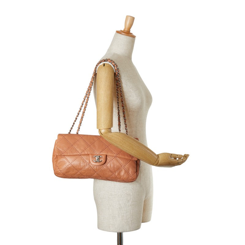 シャネル ウルトラステッチ チェーン ショルダーバッグ セミショルダーバッグ ベージュ レザー レディース CHANEL 【中古】