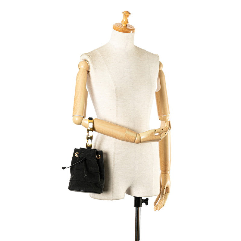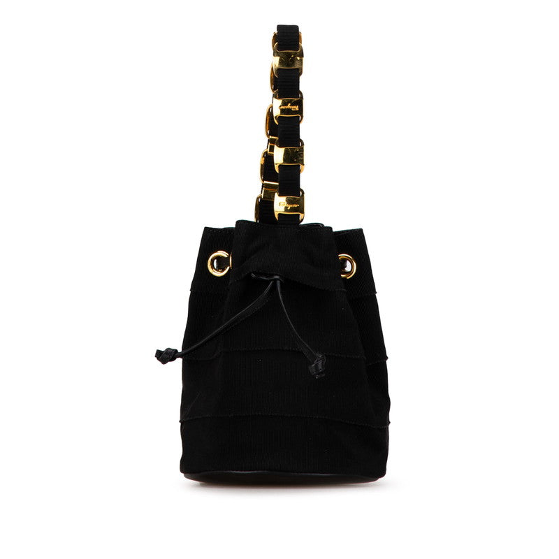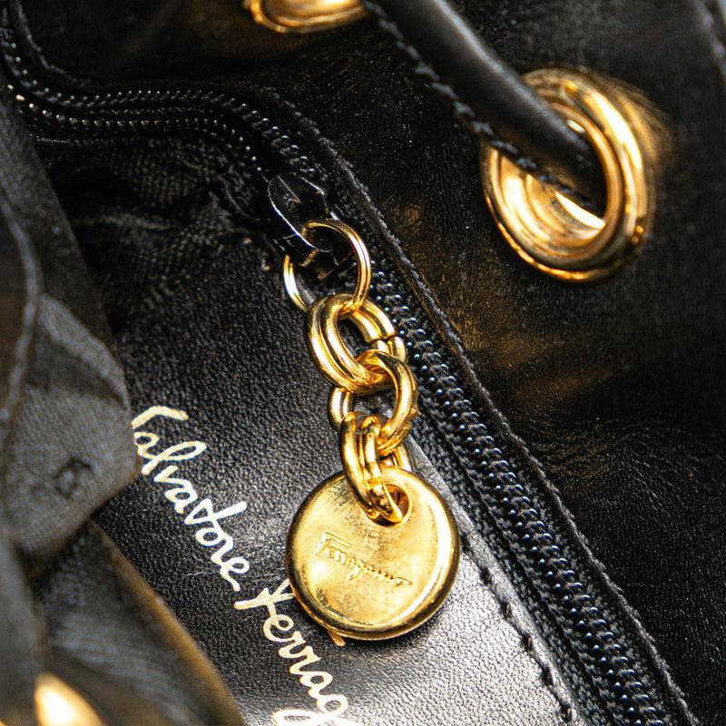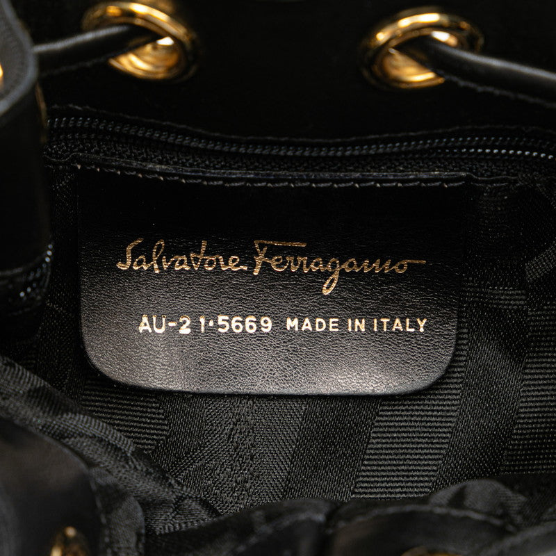 サルヴァトーレフェラガモ ヴァラ金具 ミニハンドバッグ ポーチ AU-21 5669 ブラック ゴールド ナイロン レザー レディース Salvatore Ferragamo 【中古】