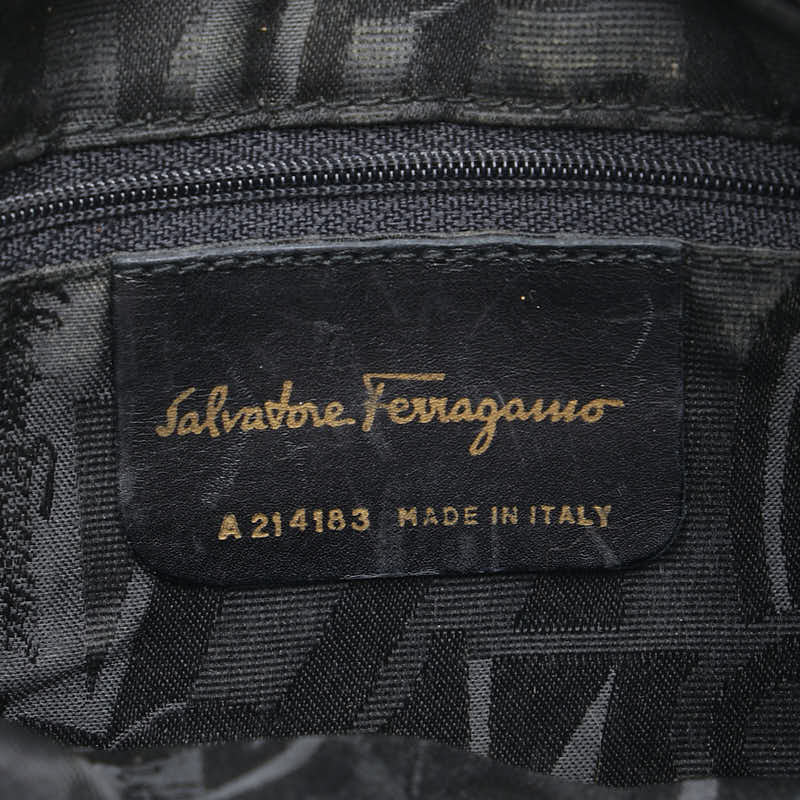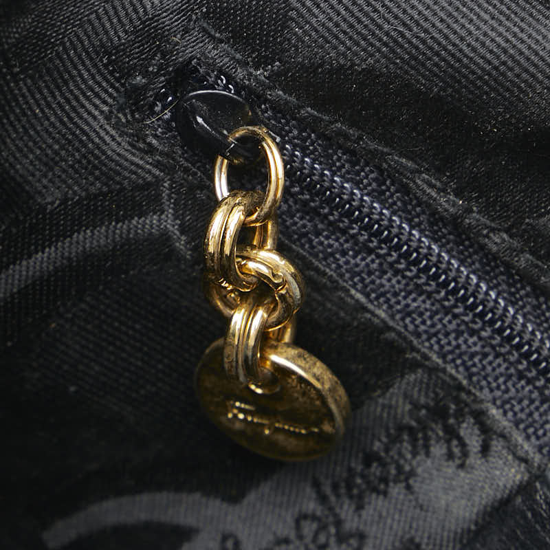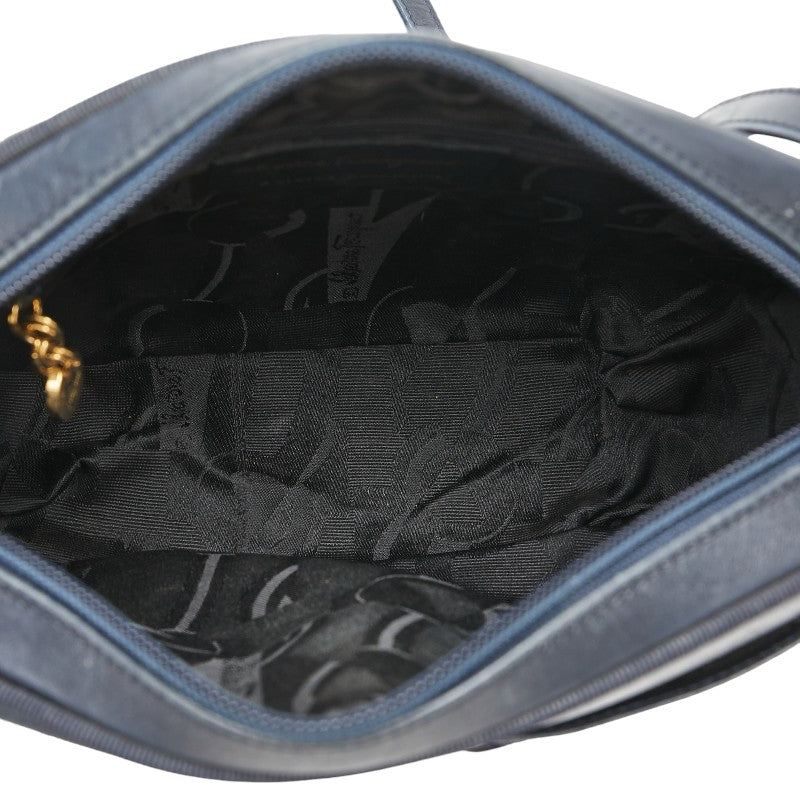 サルヴァトーレフェラガモ ヴァラリボン 斜め掛け ショルダーバッグ ネイビー レザー レディース Salvatore Ferragamo 【中古】