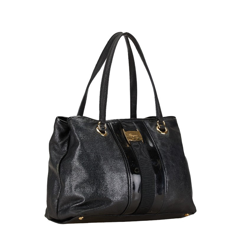 サルヴァトーレフェラガモ ハンドバッグ トートバッグ ブラック レザー エナメル レディース Salvatore Ferragamo 【中古】