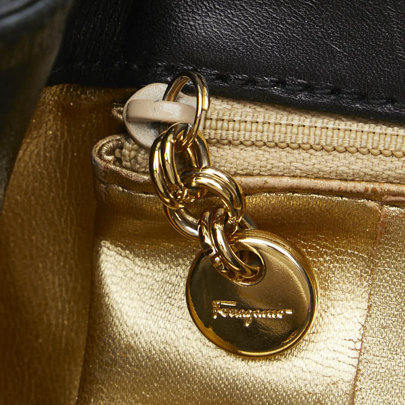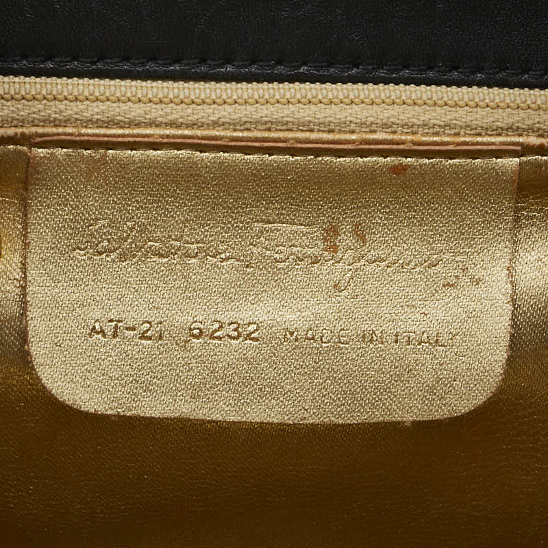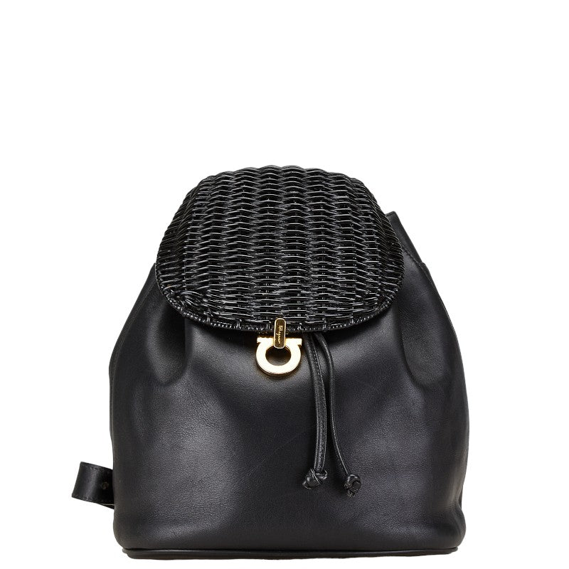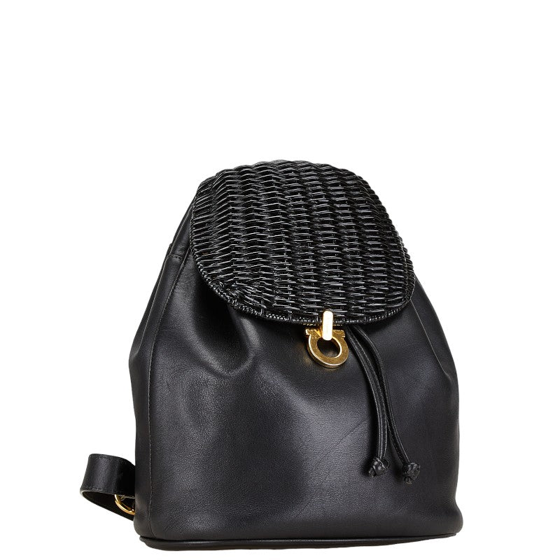 サルヴァトーレフェラガモ ガンチーニ リュック バックパック ブラック レザー ラフィア レディース Salvatore Ferragamo 【中古】