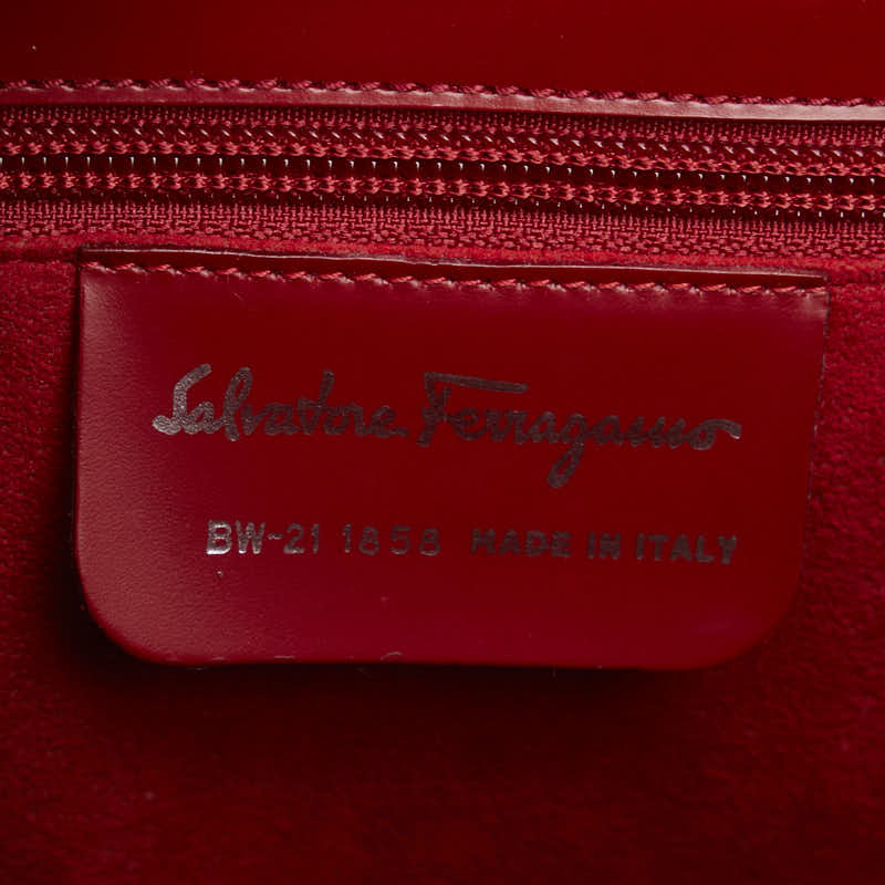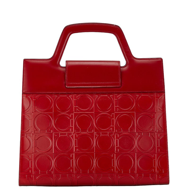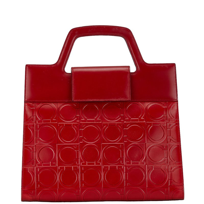 サルヴァトーレフェラガモ ガンチーニ モチーフ ハンドバッグ BW-21 1858 レッド レザー レディース Salvatore Ferragamo 【中古】