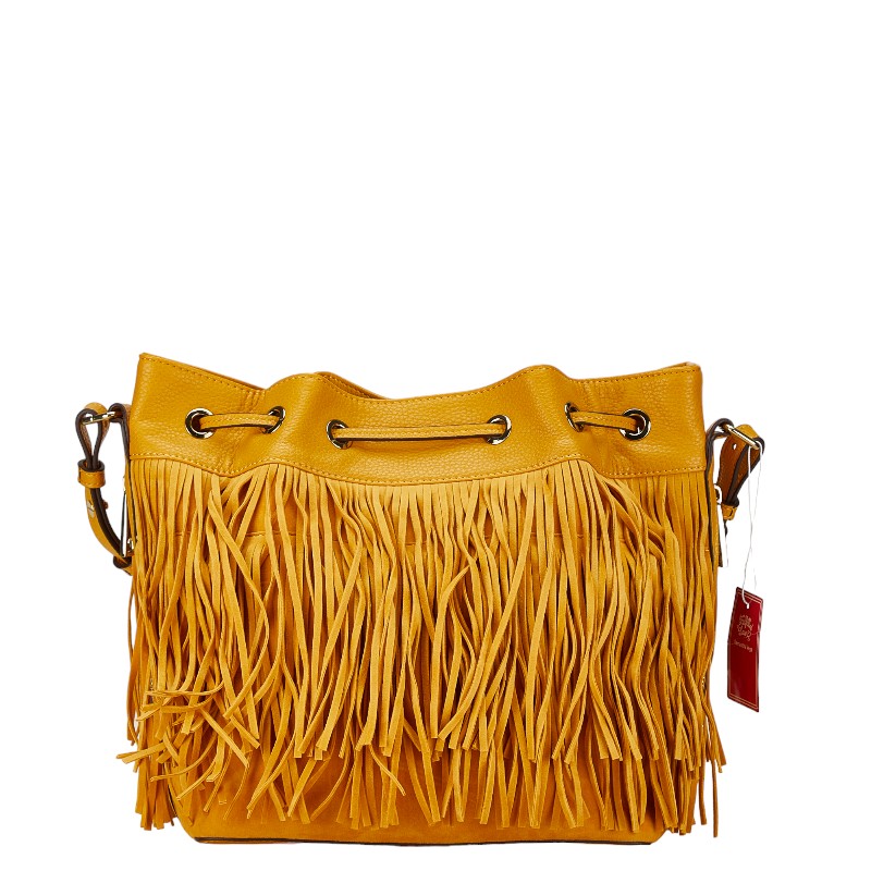 サマンサタバサ フリンジ ハンドバッグ ショルダーバッグ 1520195212 イエロー レザー レディース Samantha Thavasa 【中古】