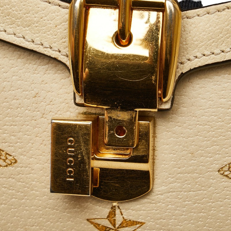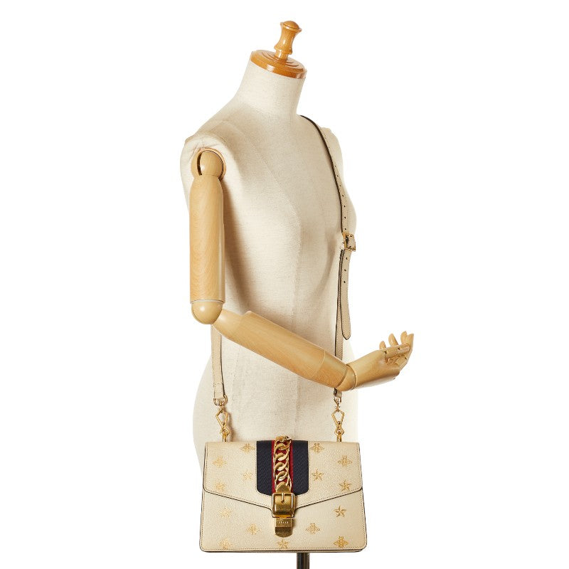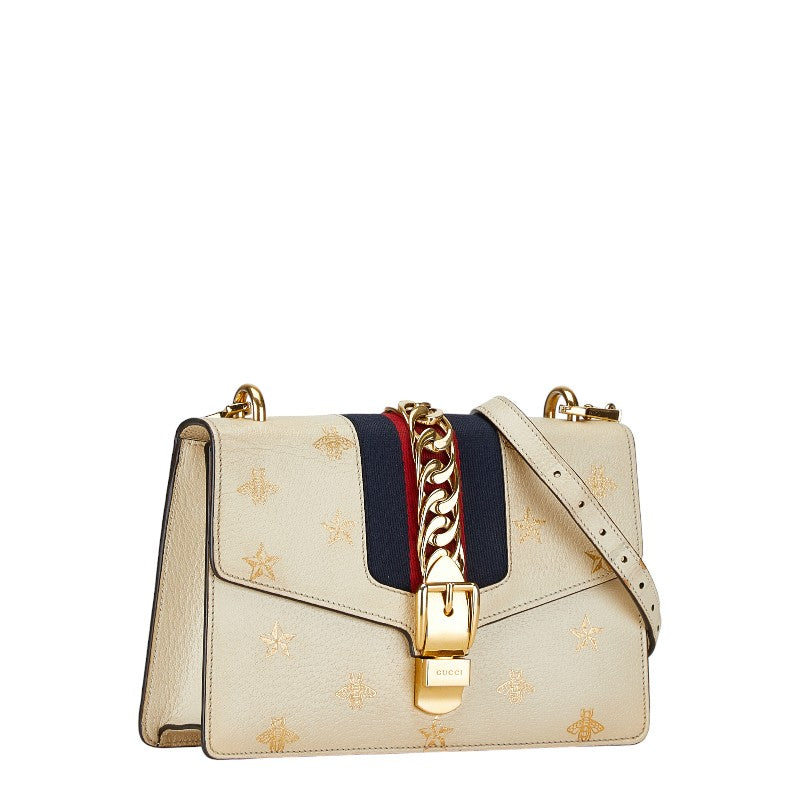 グッチ シルヴィ ビー&スター スモール チェーン ショルダーバッグ 524405 ホワイト ゴールド レザー レディース GUCCI 【中古】