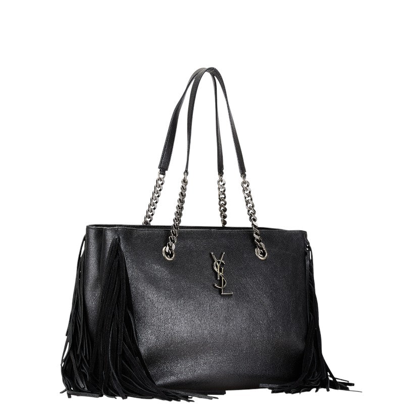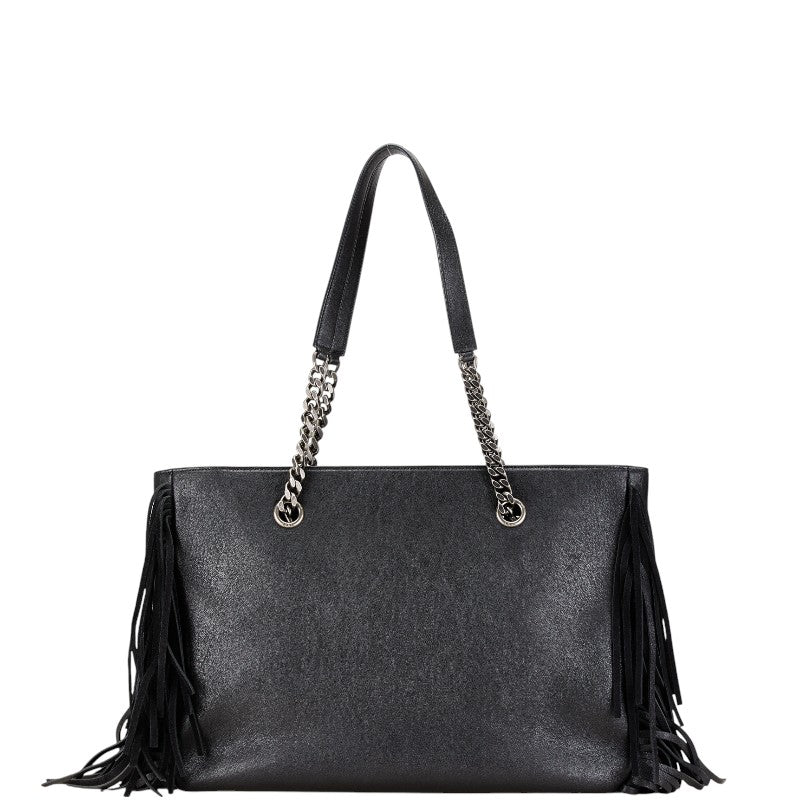 サンローラン フェスティバル フリンジバッグ YSLロゴ チェーン トートバッグ ブラック シルバー レザー レディース SAINT LAURENT 【中古】