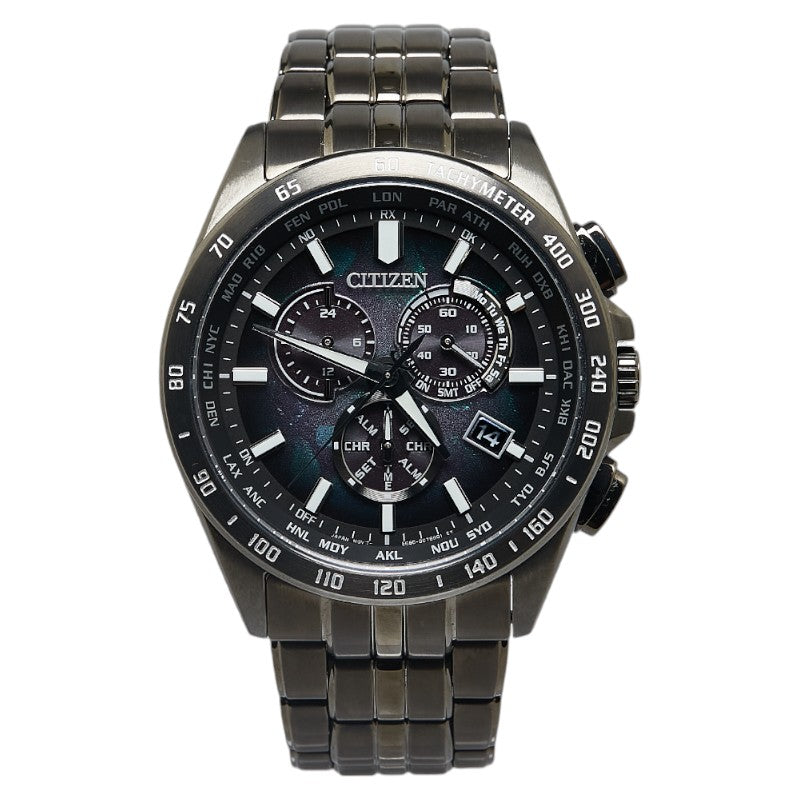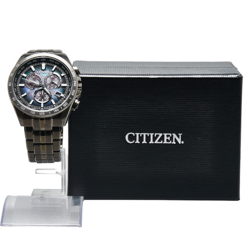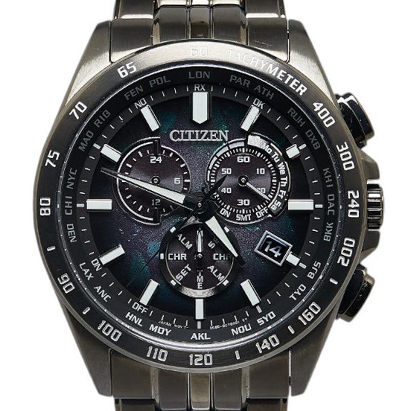 シチズン 100周年 限定モデル LAYERS of TIME エコ ドライブ 電波時計 腕時計 CB5878-56E 日本製クオーツ グリーン文字盤 ステンレススチール メンズ CITIZEN 【中古】