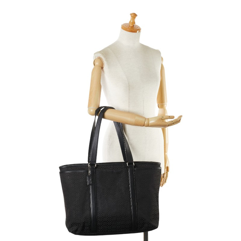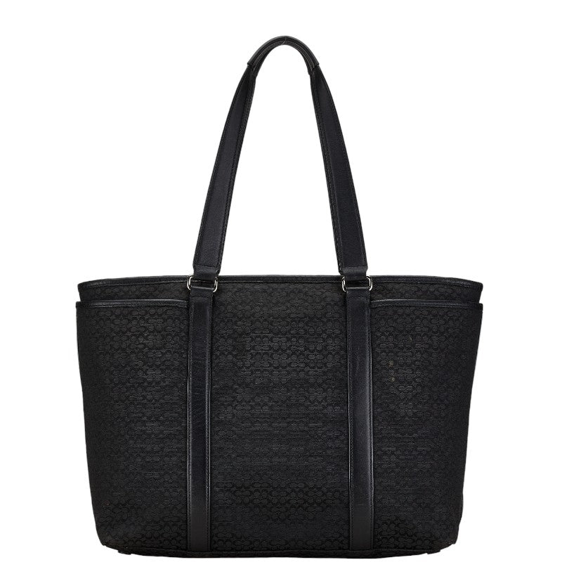 コーチ ミニシグネチャー ハンドバッグ トートバッグ F77014 ブラック キャンバス レザー レディース COACH 【中古】