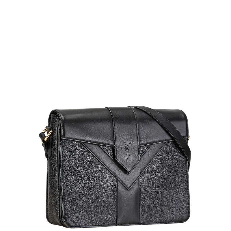 サンローラン YSLロゴ カサンドラ 斜め掛け ショルダーバッグ ブラック レザー レディース SAINT LAURENT 【中古】