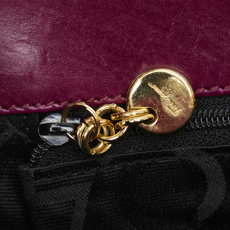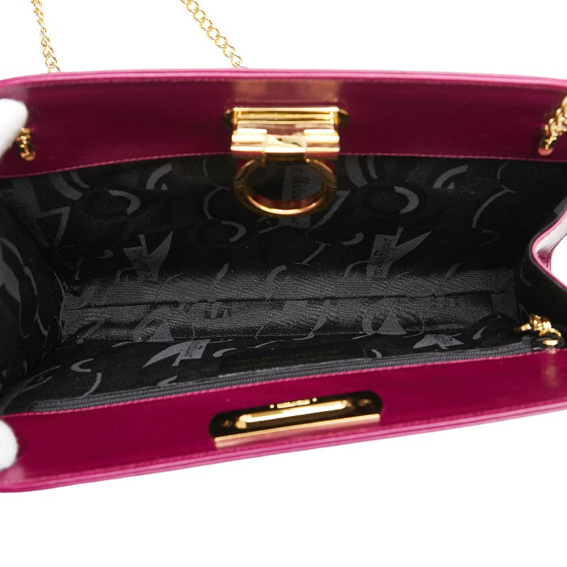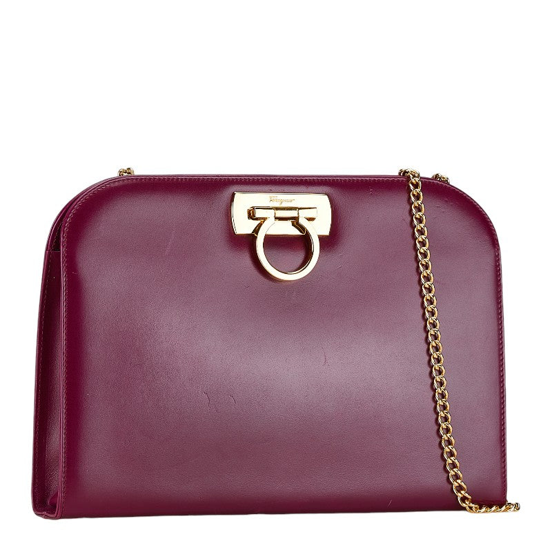 サルヴァトーレフェラガモ ガンチーニ 斜め掛け チェーン ショルダーバッグ BV-210587 パープル レザー レディース Salvatore Ferragamo 【中古】