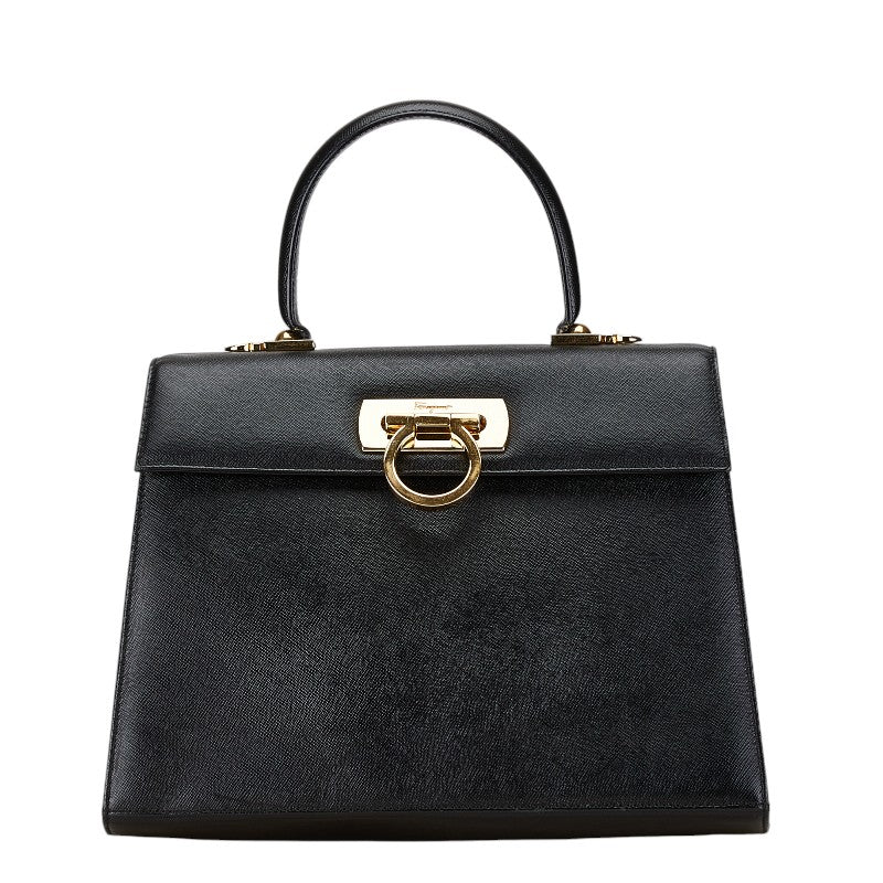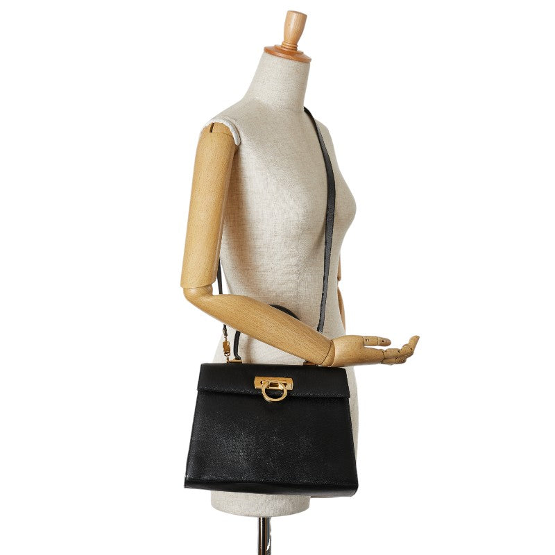 サルヴァトーレフェラガモ ガンチーニ ハンドバッグ ショルダーバッグ 2WAY ブラック レザー レディース Salvatore Ferragamo 【中古】
