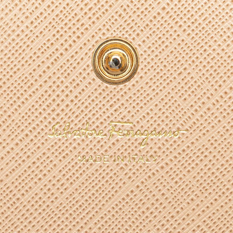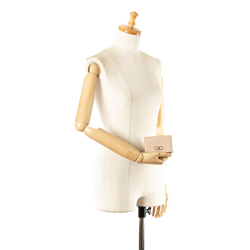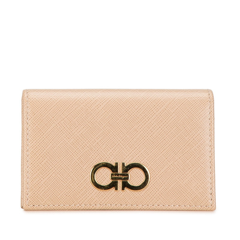 サルヴァトーレフェラガモ ガンチーニ カードケース 名刺入れ ピンクベージュ レザー レディース Salvatore Ferragamo 【中古】