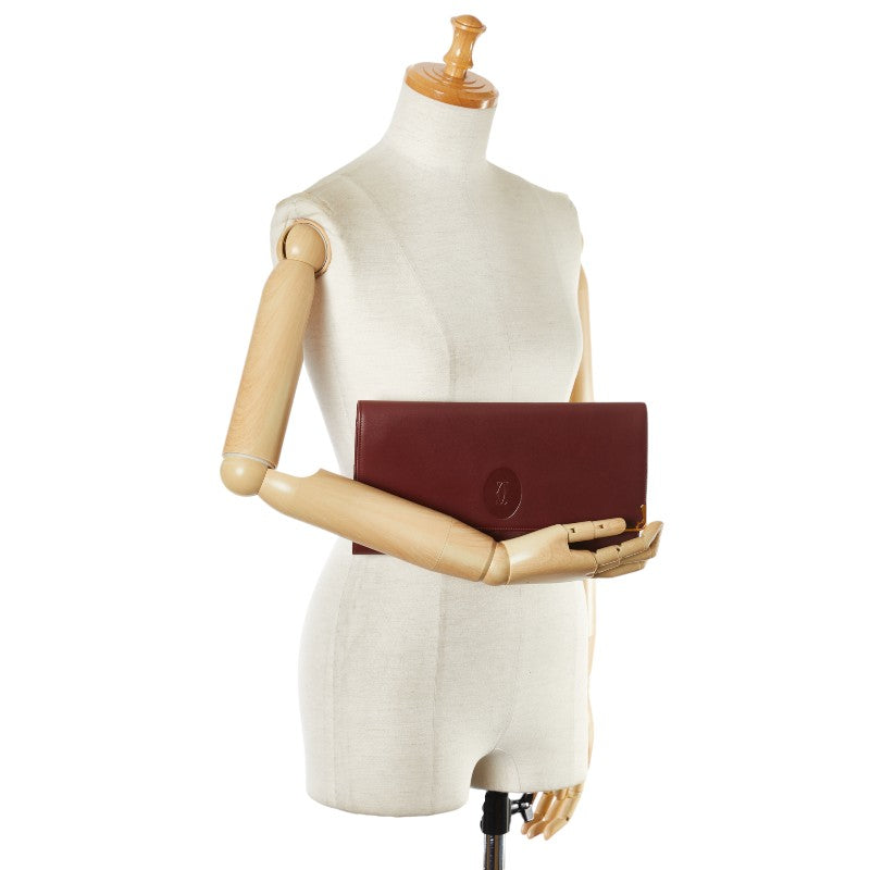 カルティエ マストライン クラッチバッグ セカンドバッグ ワインレッド レザー レディース CARTIER 【中古】
