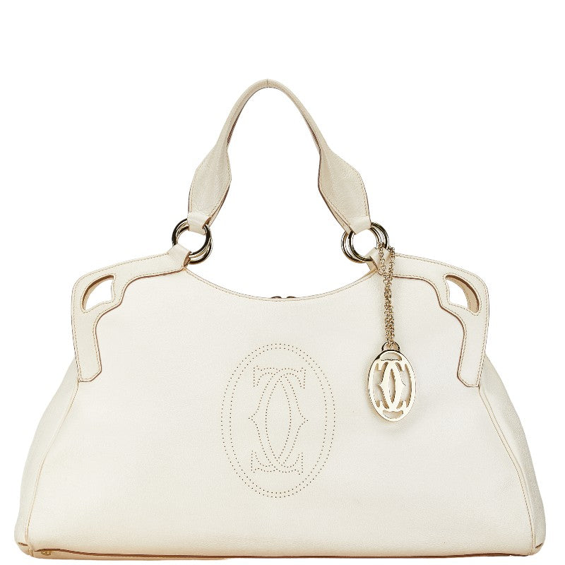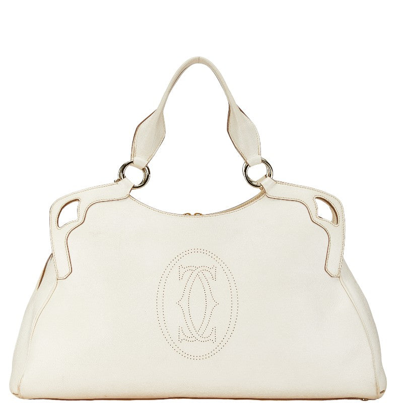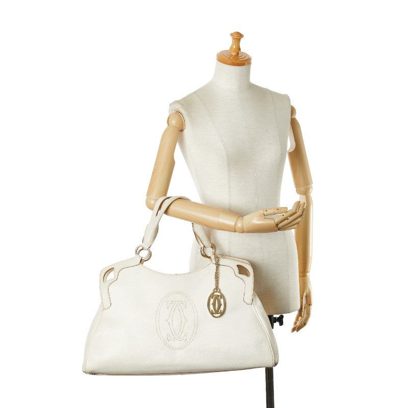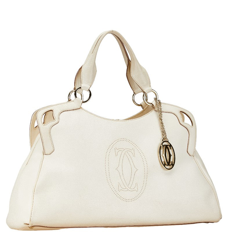 カルティエ マストライン マルチェロ ハンドバッグ ホワイト レザー レディース CARTIER 【中古】