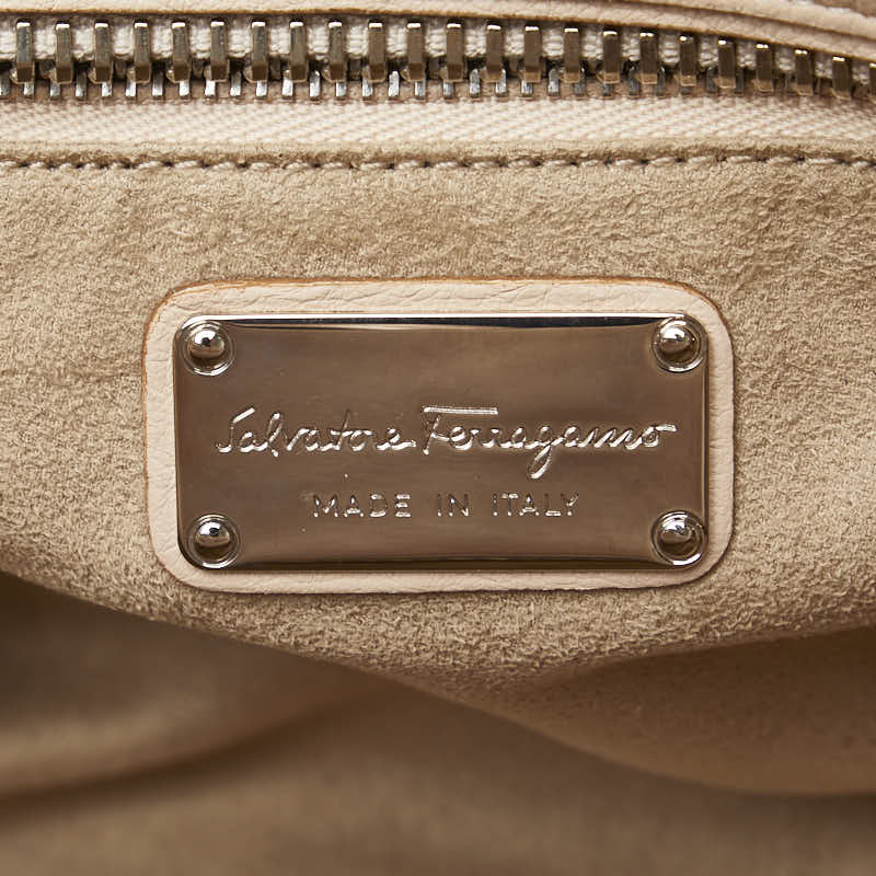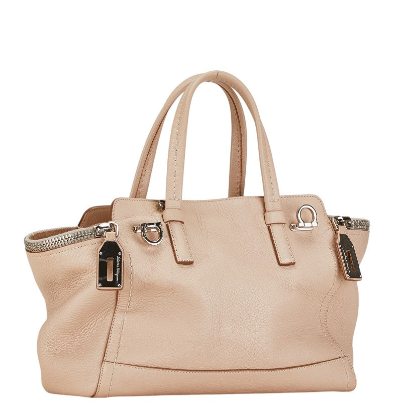 サルヴァトーレフェラガモ ガンチーニ ハンドバッグ ショルダーバッグ 2WAY E424 ピンクベージュ レザー レディース Salvatore Ferragamo 【中古】