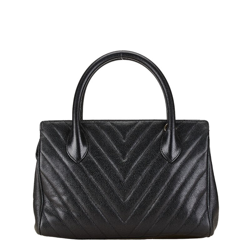 シャネル Vステッチ ハンドバッグ ブラック キャビアスキン レディース CHANEL 【中古】