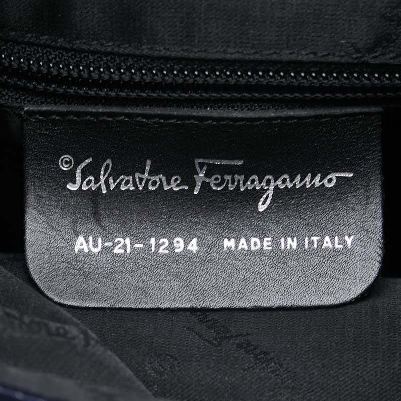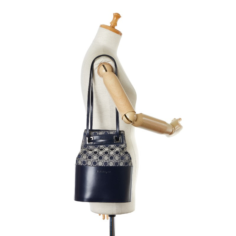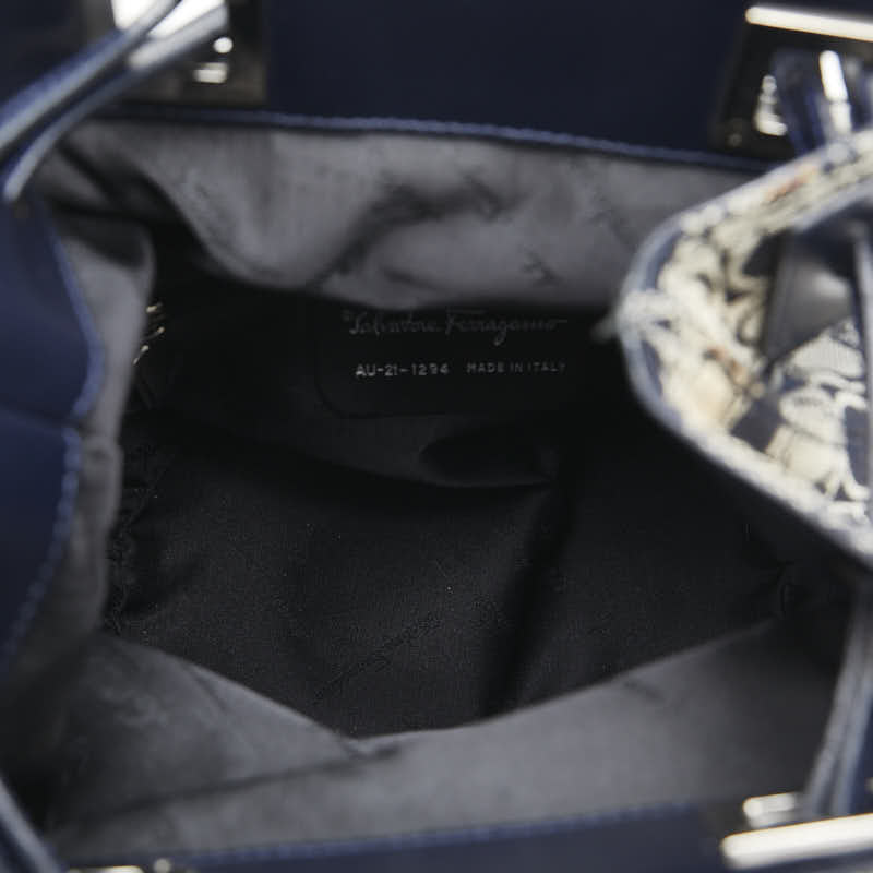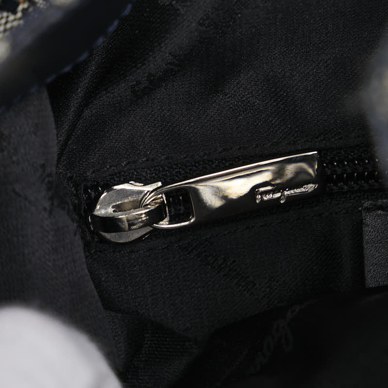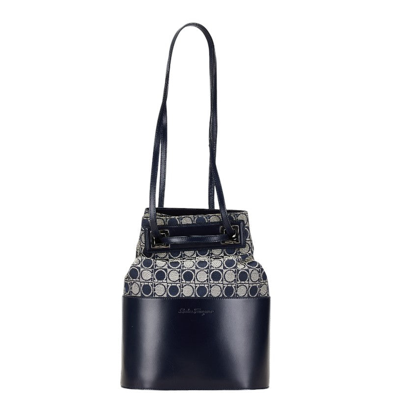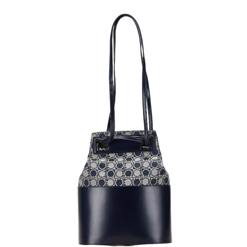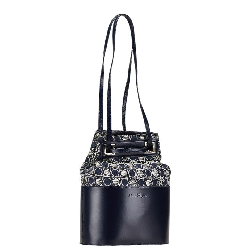 サルヴァトーレフェラガモ ガンチーニ ショルダーバッグ ハンドバッグ AU-21-1294 ネイビー キャンバス レザー レディース Salvatore Ferragamo 【中古】