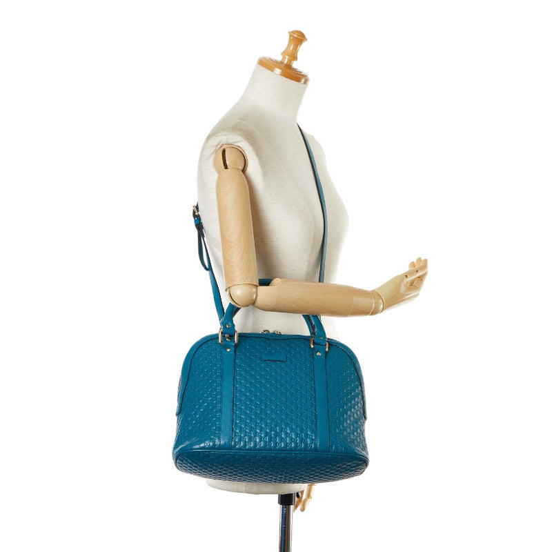 グッチ マイクログッチシマ ハンドバッグ ショルダーバッグ 2WAY 449663 ターコイズ ブルー レザー レディース GUCCI 【中古】