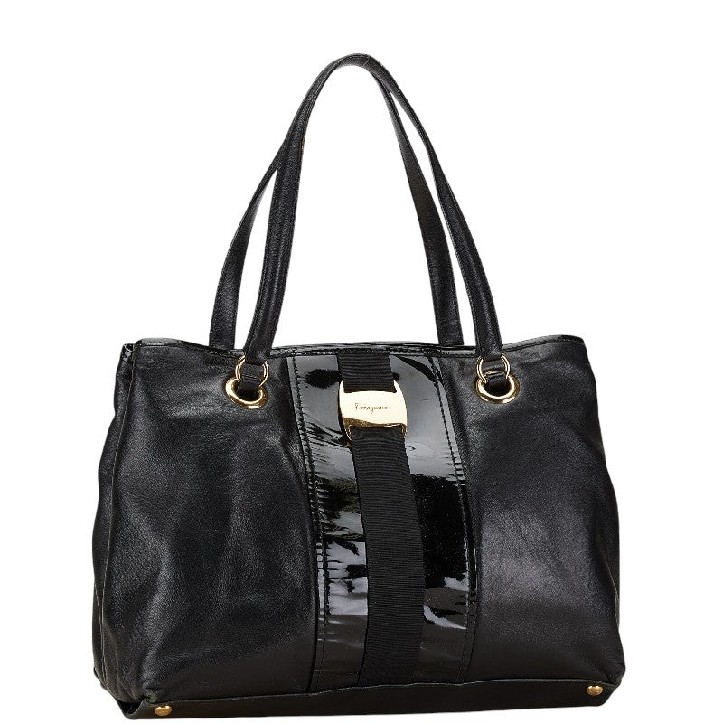 サルヴァトーレフェラガモ トートバッグ ハンドバッグ FJ-21E166 ブラック レザー エナメル レディース Salvatore Ferragamo 【中古】