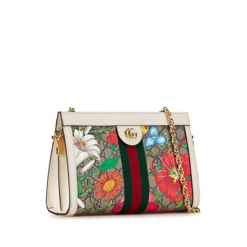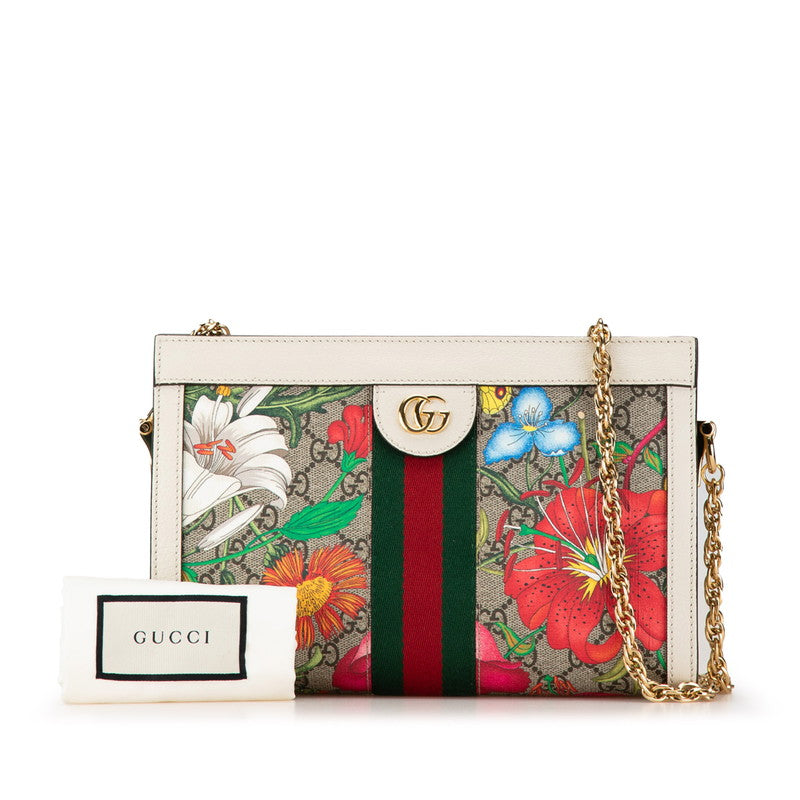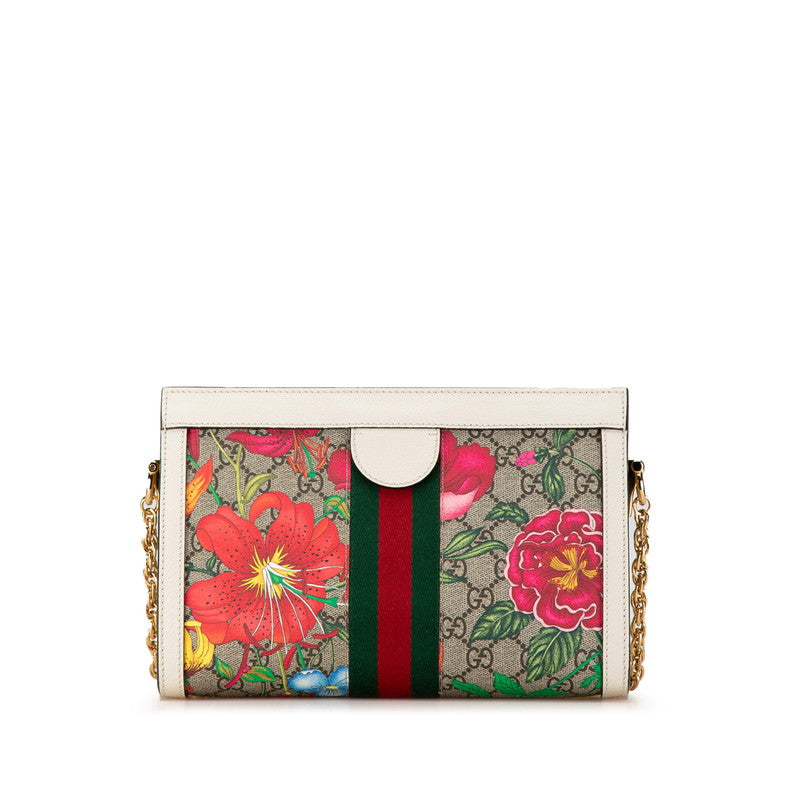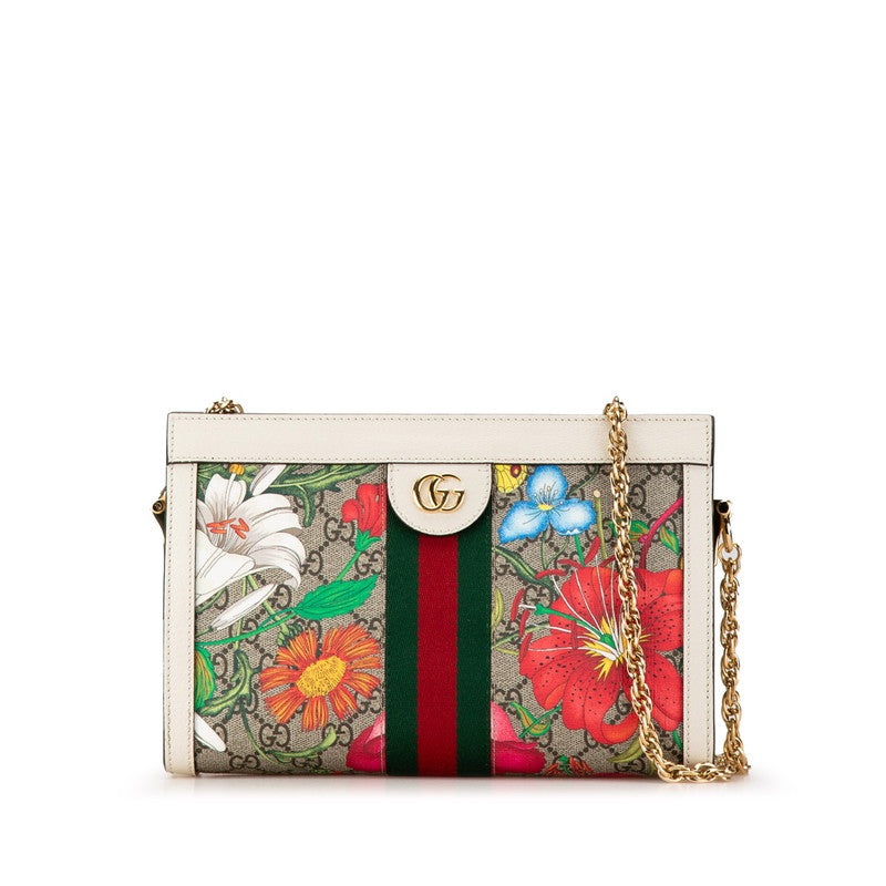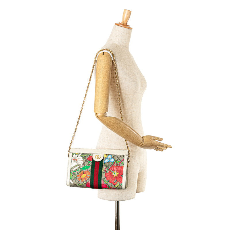 グッチ オフィディア シェリーライン フラワー チェーン 斜め掛け ショルダーバッグ 503877 ベージュ アイボリー マルチカラー PVC レザー レディース GUCCI 【中古】