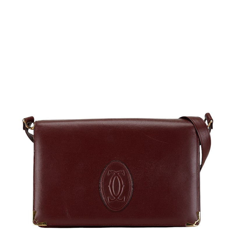 カルティエ マストライン 斜め掛け ショルダーバッグ ワインレッド ボルドー レザー レディース CARTIER 【中古】