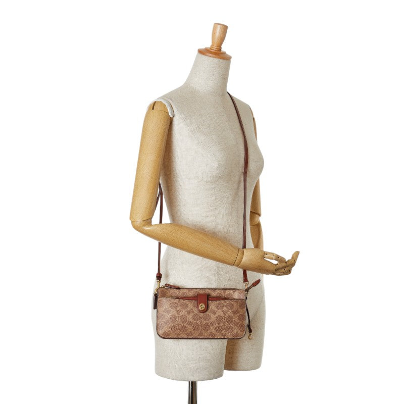 コーチ シグネチャー ノア ポップアップ ショルダーバッグ C5369 ブラウン PVC レザー レディース COACH 【中古】
