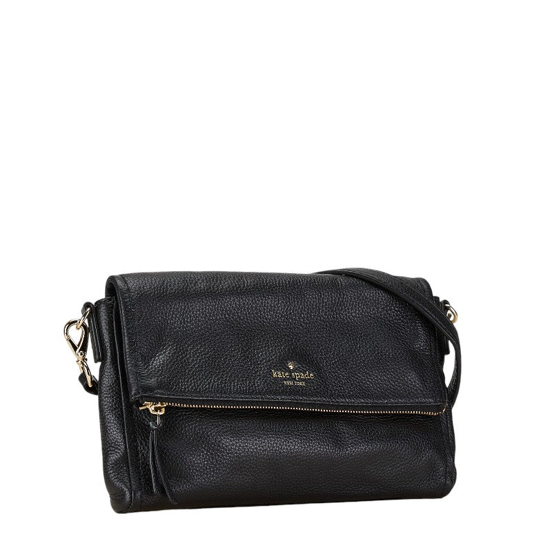ケイトスペード ロゴ 斜め掛け ショルダーバッグ ブラック レザー レディース Kate Spade 【中古】