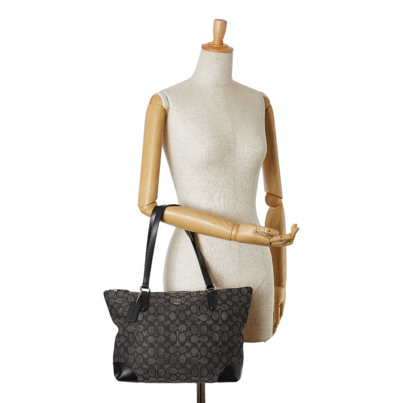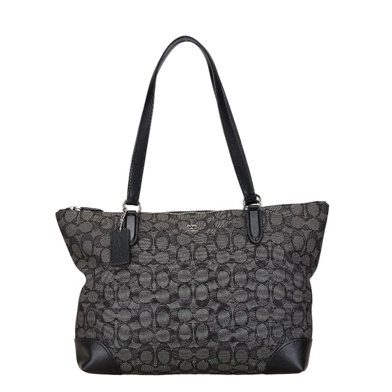 コーチ シグネチャー トートバッグ F29968 ブラック キャンバス レザー レディース COACH 【中古】