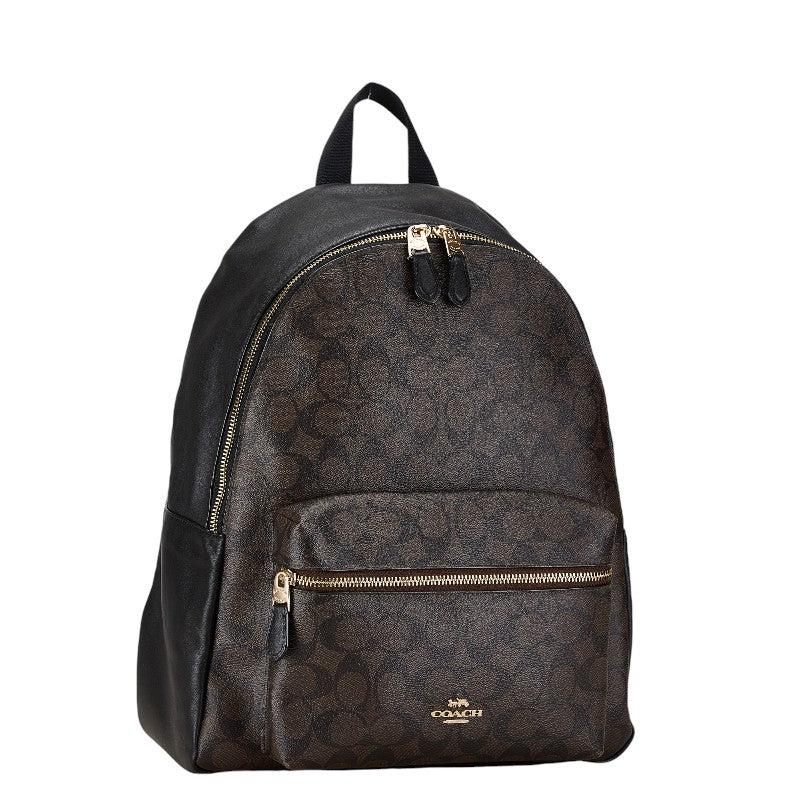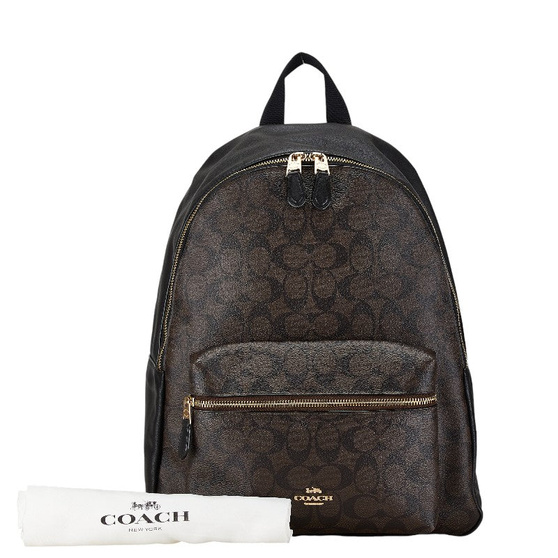 コーチ シグネチャー リュック バックパック F58314 ブラック ブラウン PVC レザー レディース COACH 【中古】