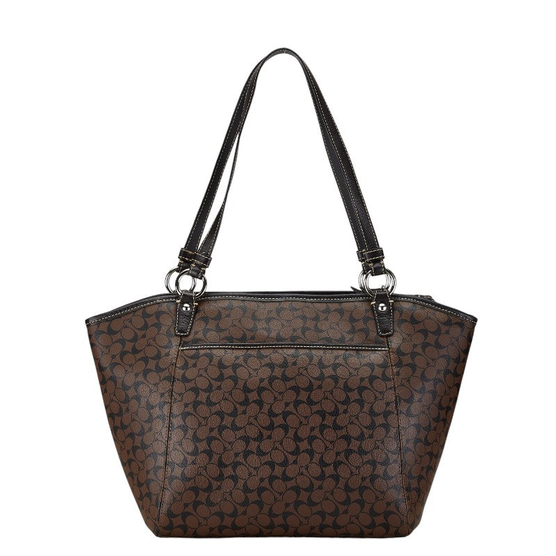 コーチ ミニシグネチャー ハンドバッグ トートバッグ F15135 ブラウン ブラック レザー レディース COACH 【中古】