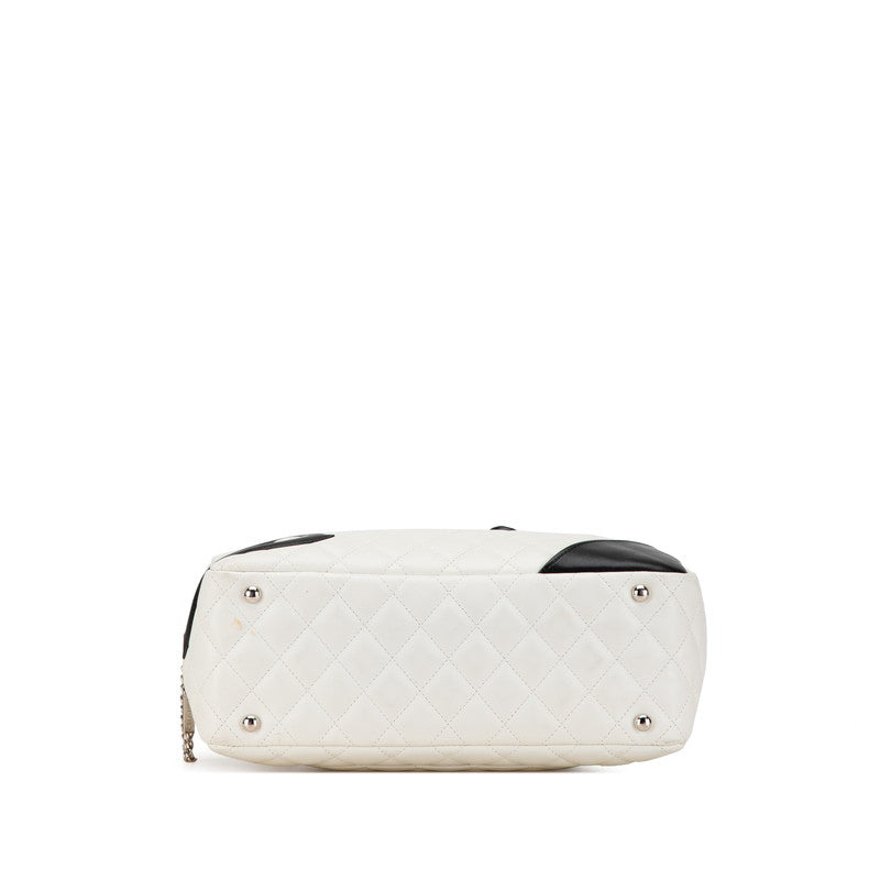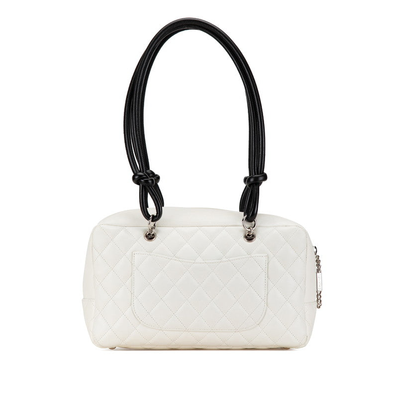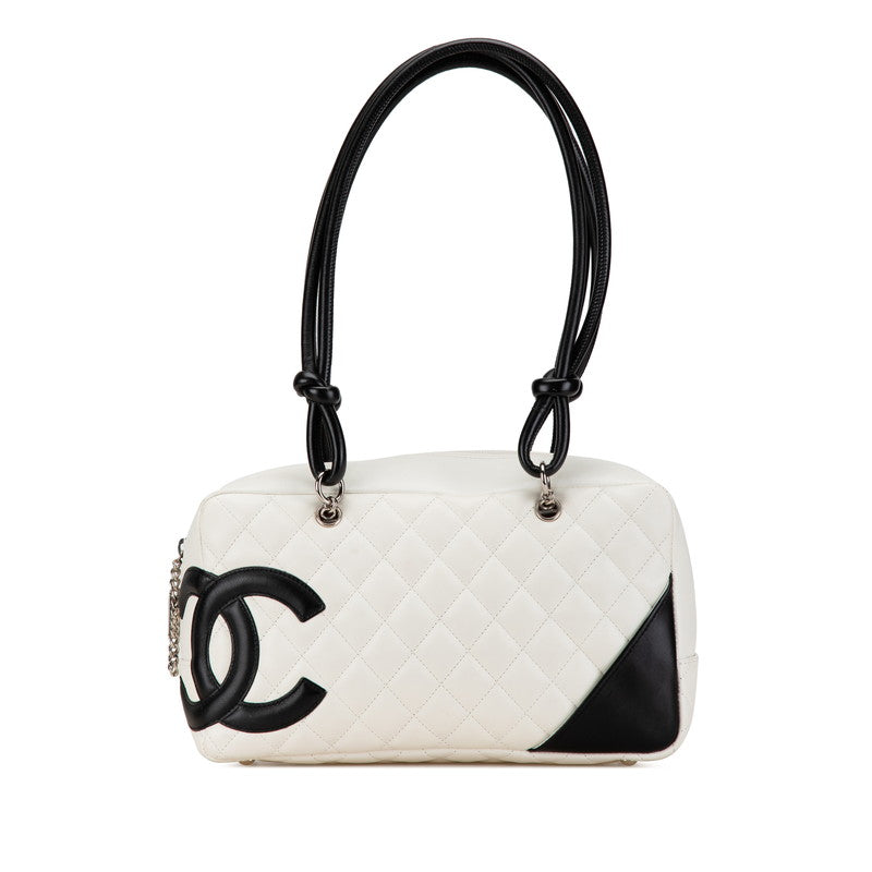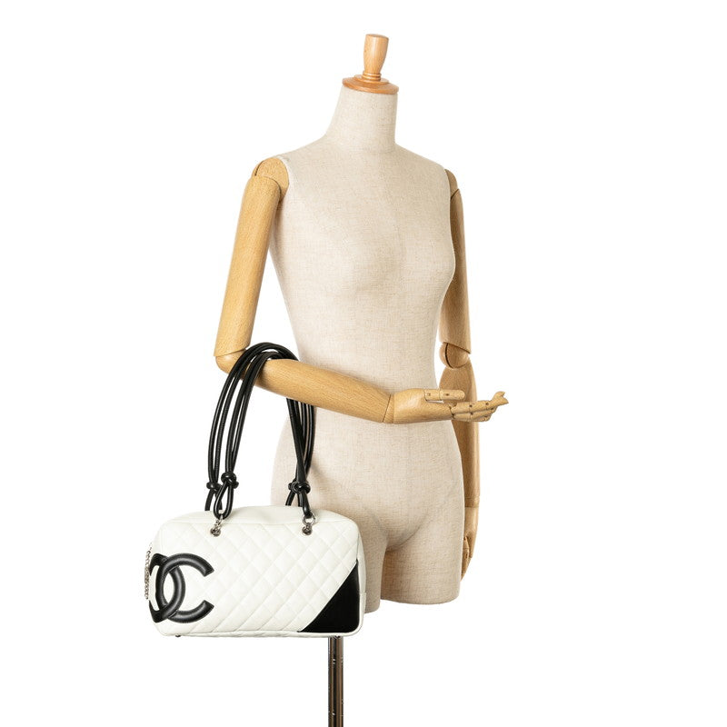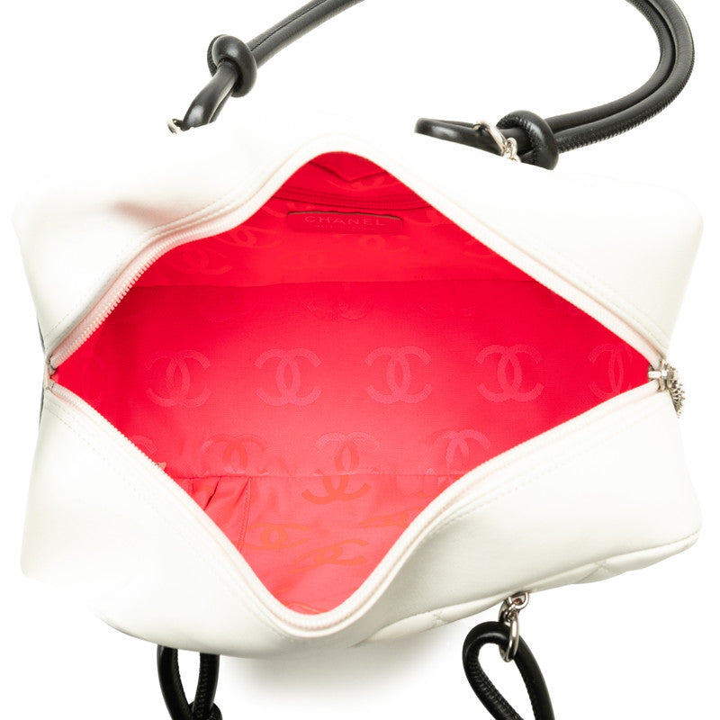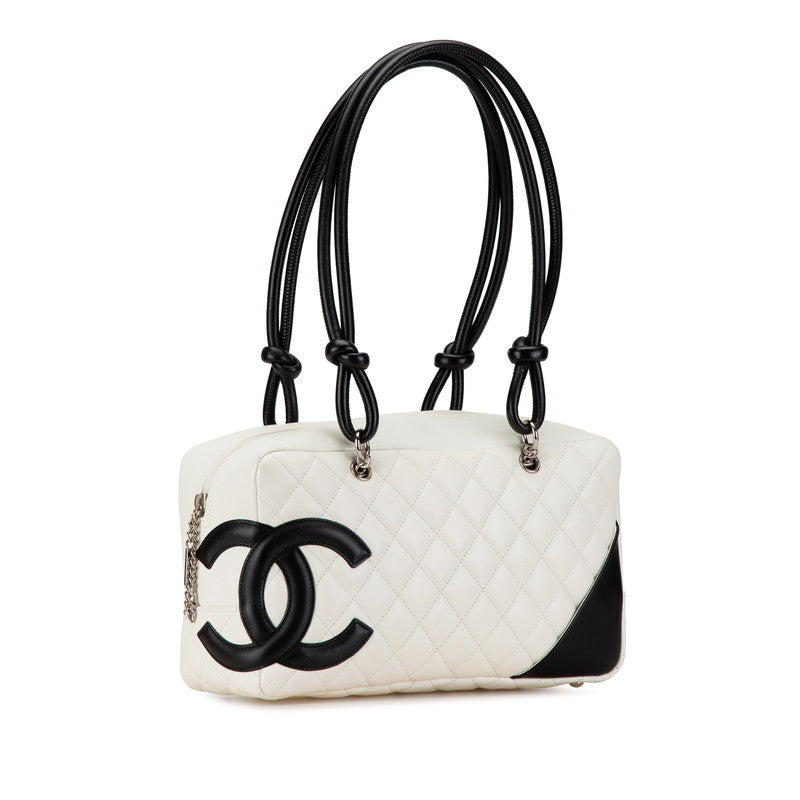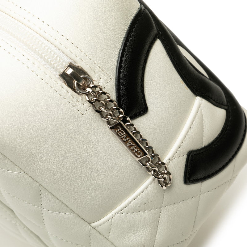 シャネル カンボンライン ココマーク ショルダーバッグ ボーリングバッグ A25171 ホワイト ブラック ラムスキン レディース CHANEL 【中古】