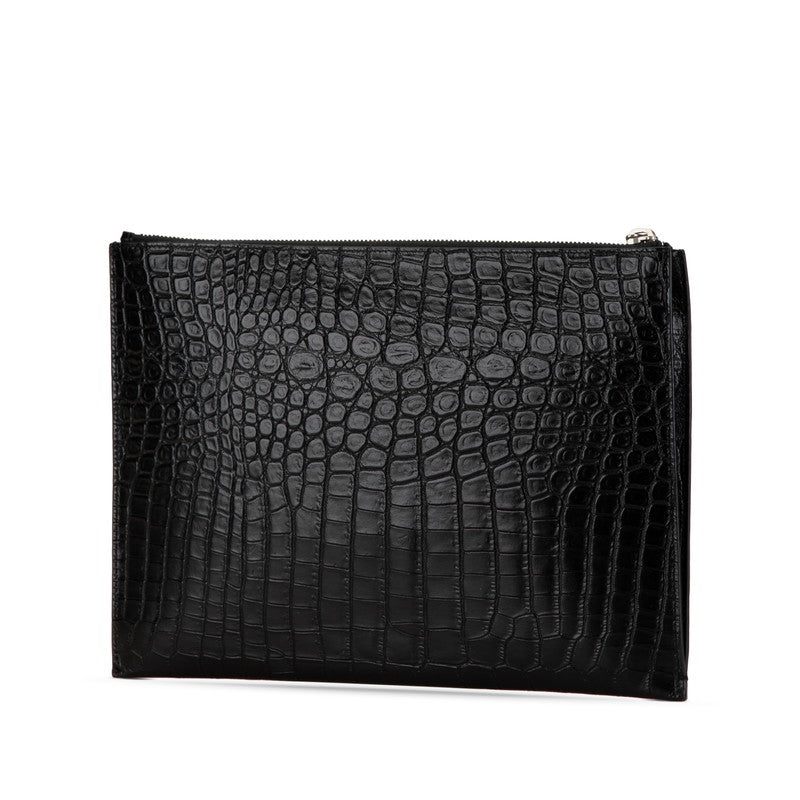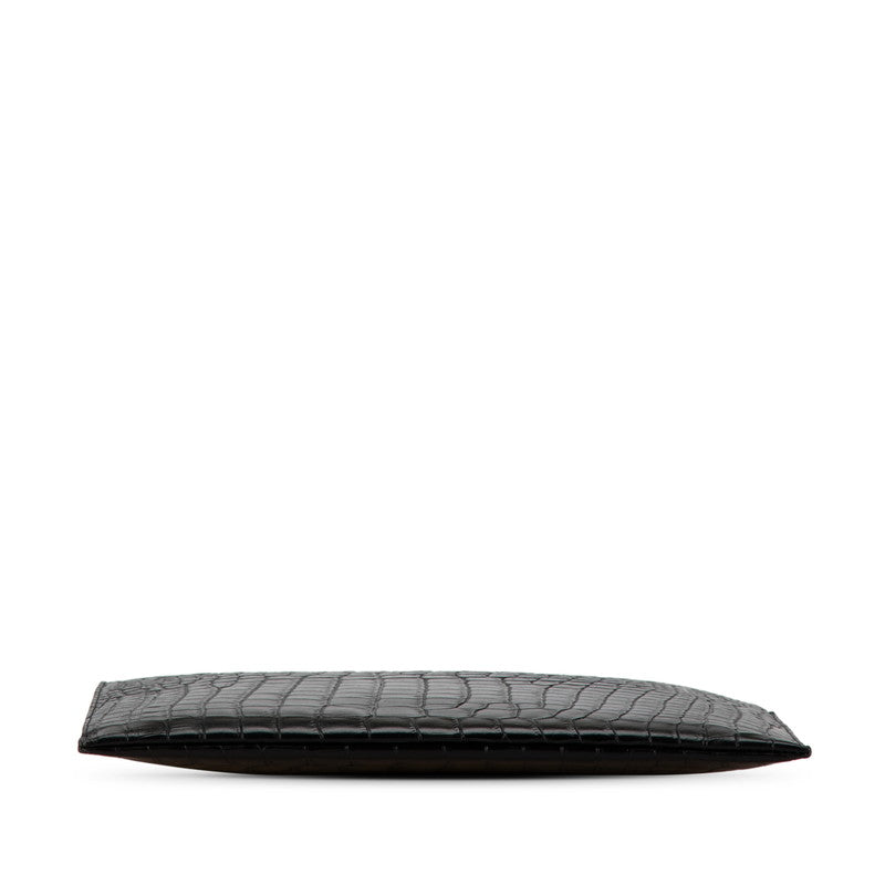 サンローラン クロコ型押し タブレットケース クラッチバッグ 462361 ブラック レザー レディース SAINT LAURENT 【中古】