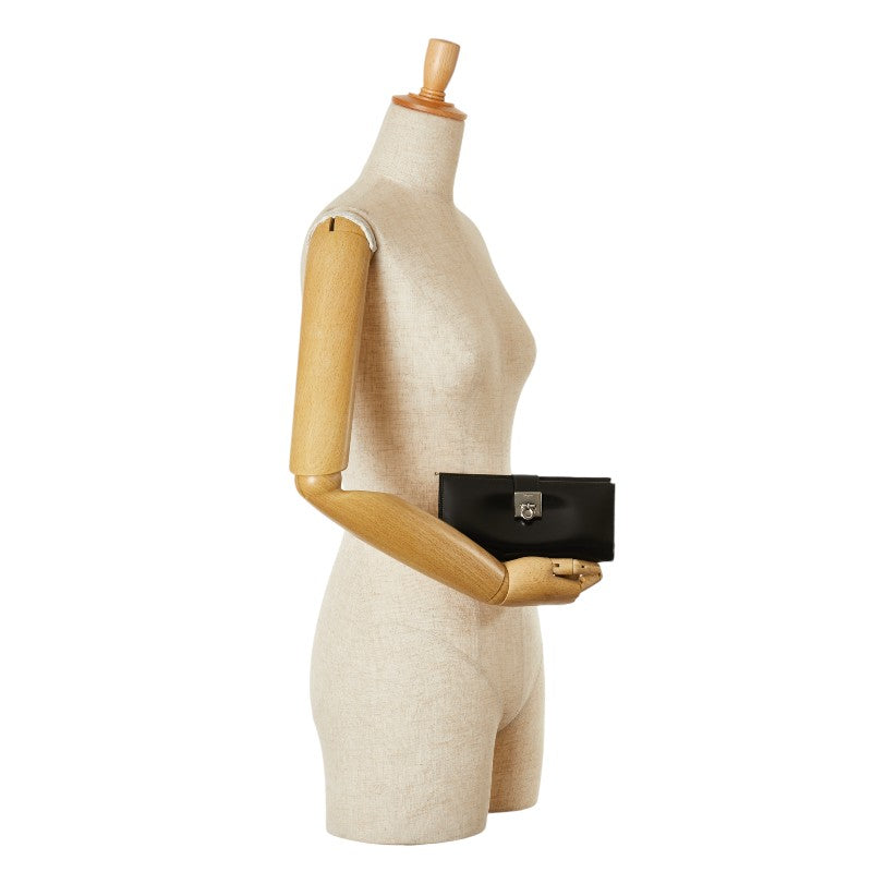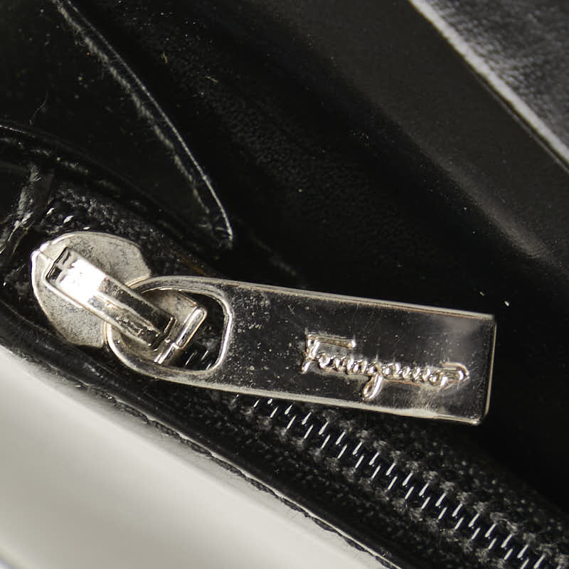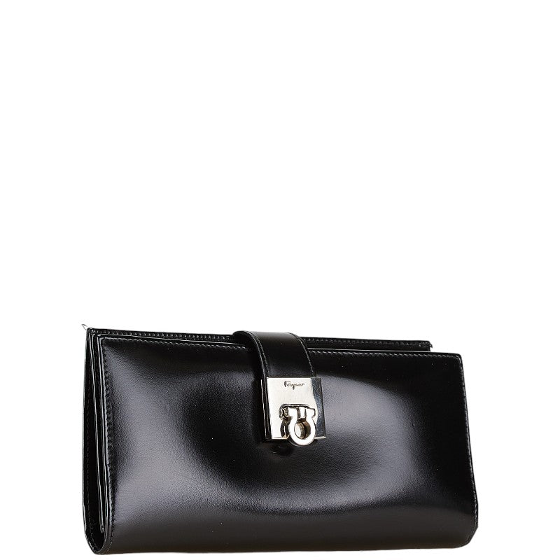 サルヴァトーレフェラガモ ガンチーニ 長財布 ブラック シルバー レザー レディース Salvatore Ferragamo 【中古】