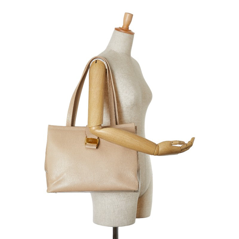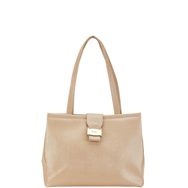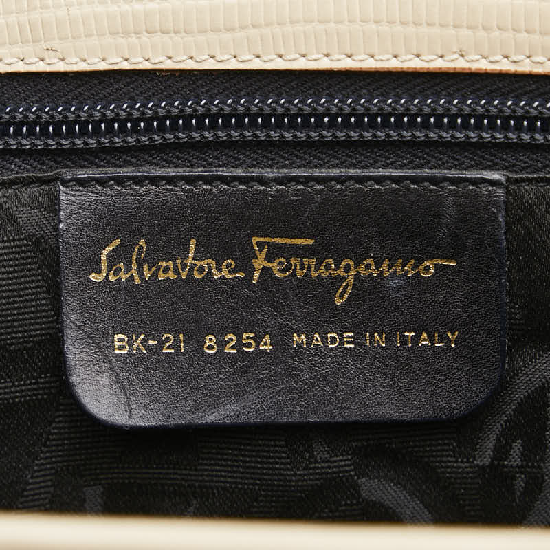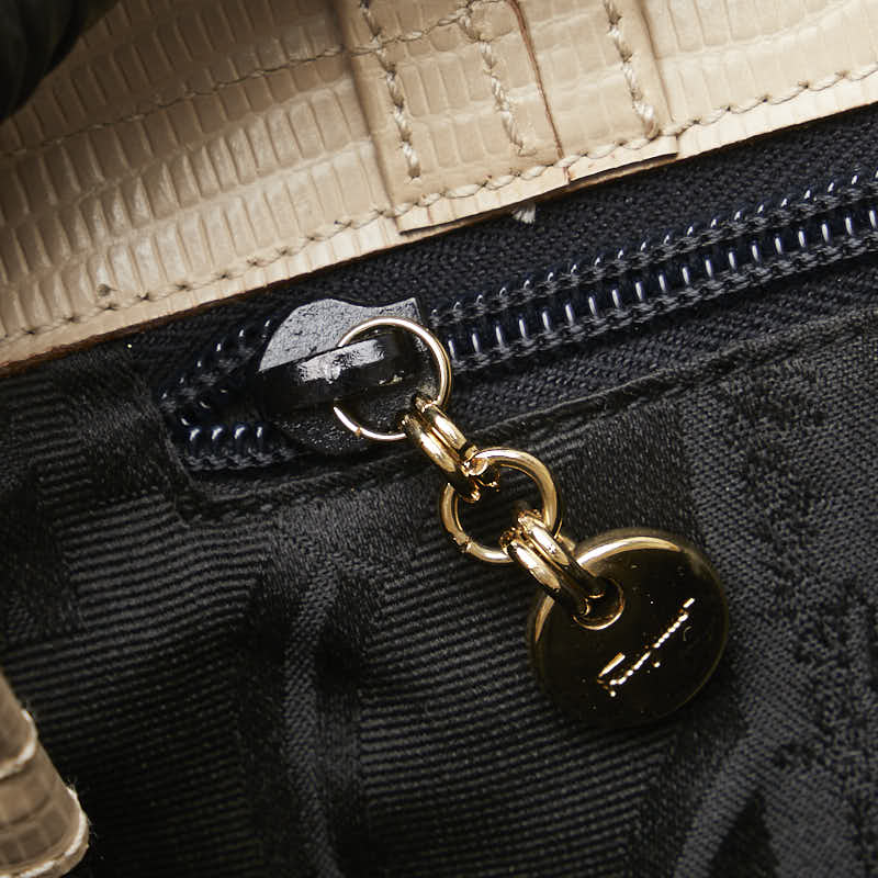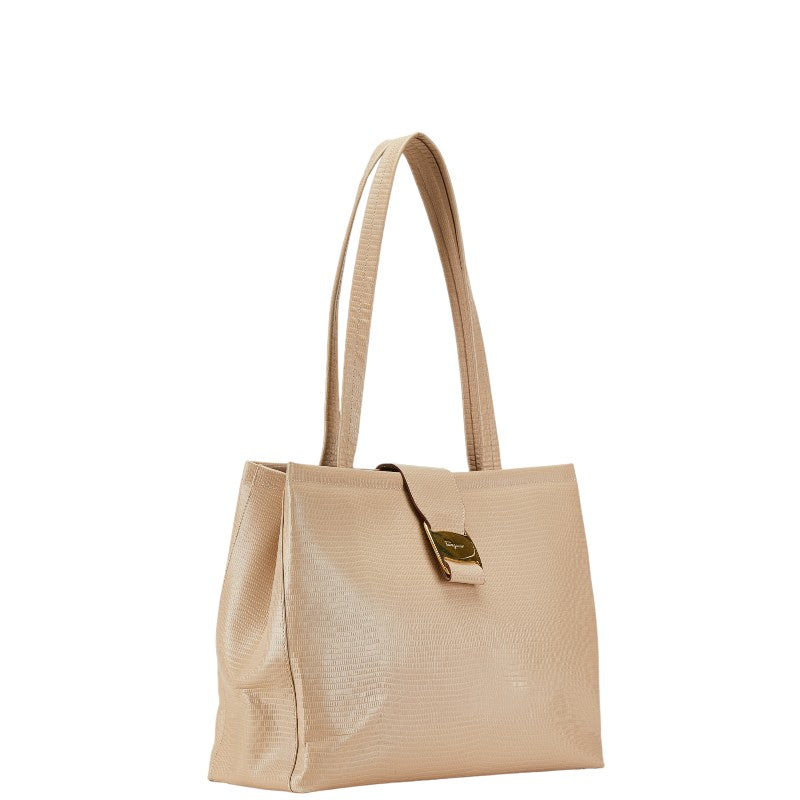 サルヴァトーレフェラガモ ヴァラ リザード型押し ハンドバッグ トートバッグ 8254 ベージュ レザー レディース Salvatore Ferragamo 【中古】