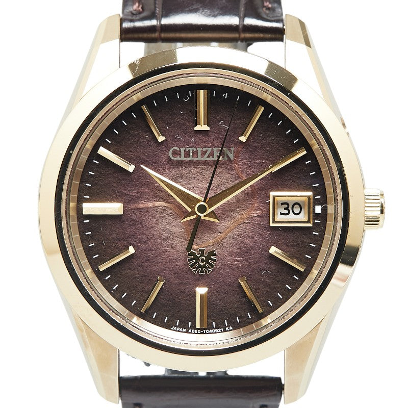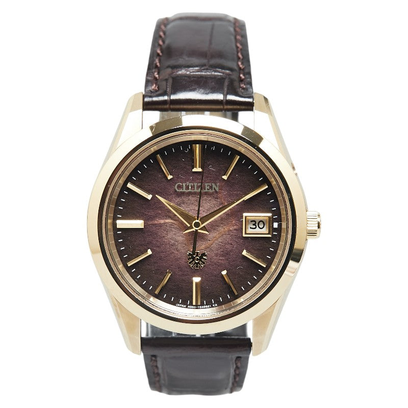 シチズン ザ シチズン アイコニック ネイチャー コレクション 和紙文字盤250本限定モデル 腕時計 AQ4102-01X クオーツ ブラウン文字盤 スーパーチタニウム/ワニ革バンド メンズ CITIZEN 【中古】