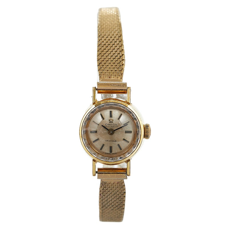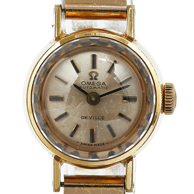 オメガ デビル カットガラス 腕時計 手巻き ゴールド文字盤 ステンレススチール メッキ レディース OMEGA 【中古】
