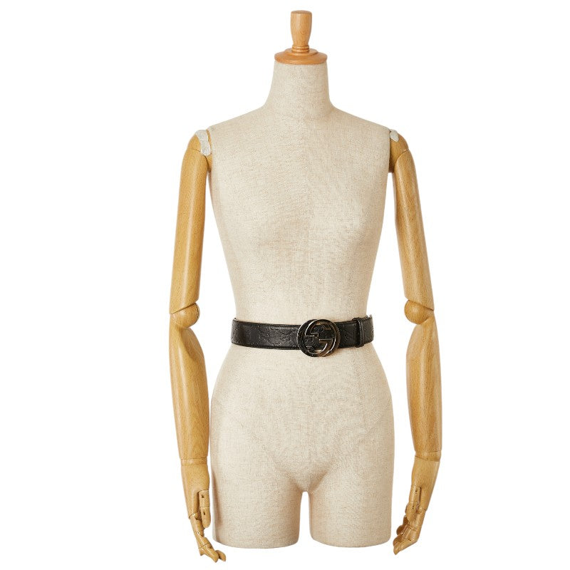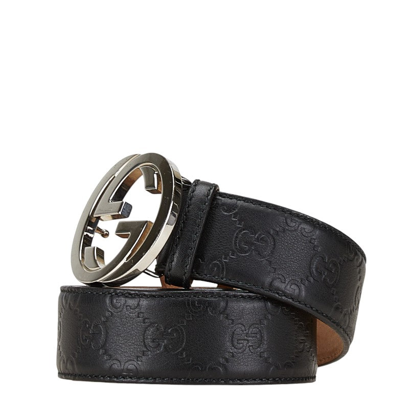 グッチ グッチシマ インターロッキングG ベルト 90.36 114984 ブラック シルバー レザー メンズ GUCCI 【中古】