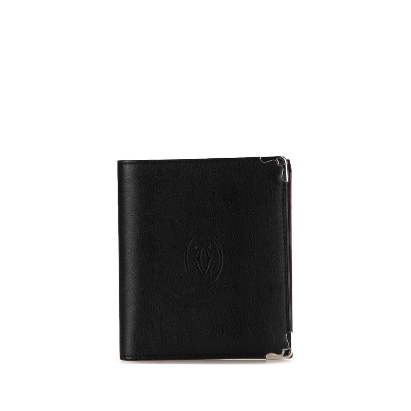 カルティエ マストライン 二つ折り財布 ブラック レザー レディース CARTIER 【中古】