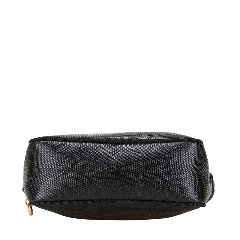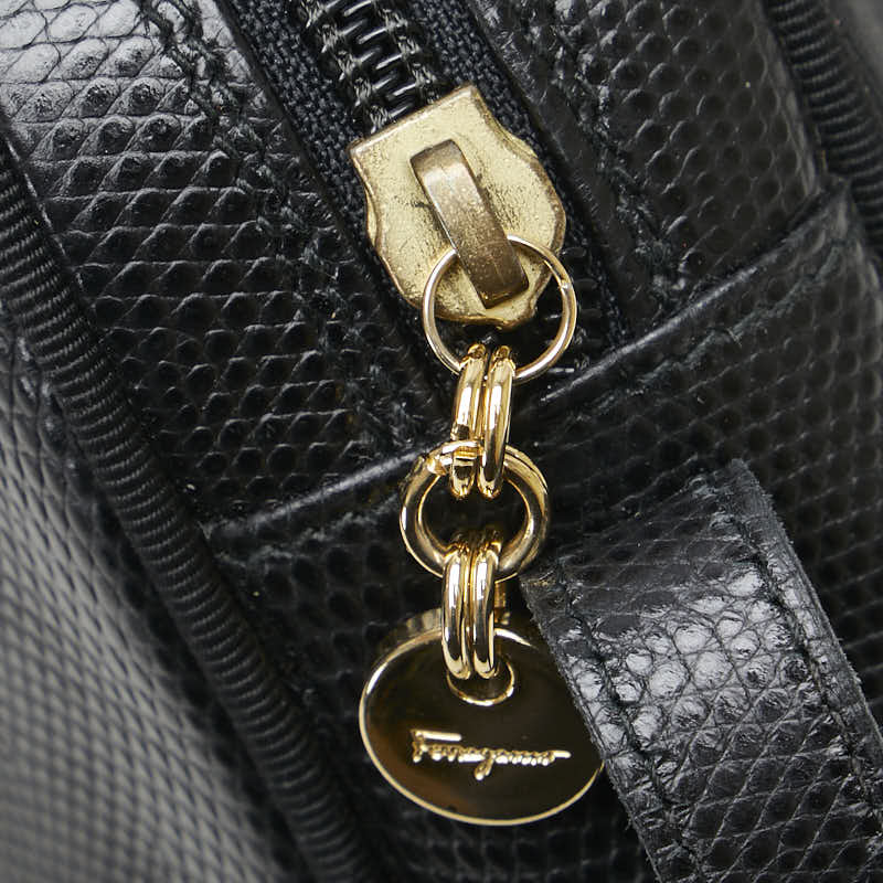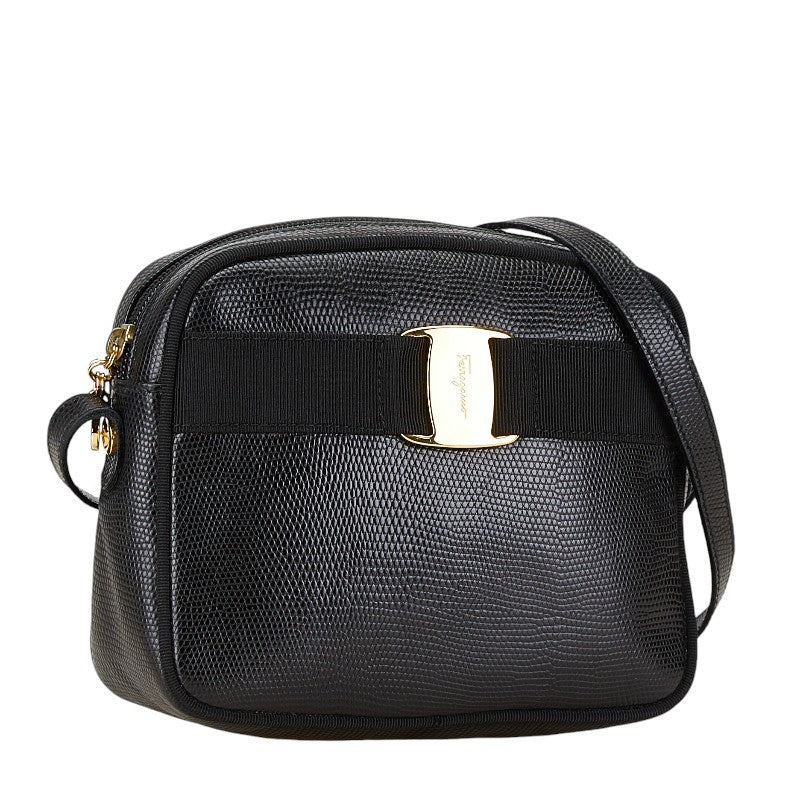 サルヴァトーレフェラガモ ヴァラ リザード 型押し ショルダーバッグ D213096 ブラック レザー レディース Salvatore Ferragamo 【中古】